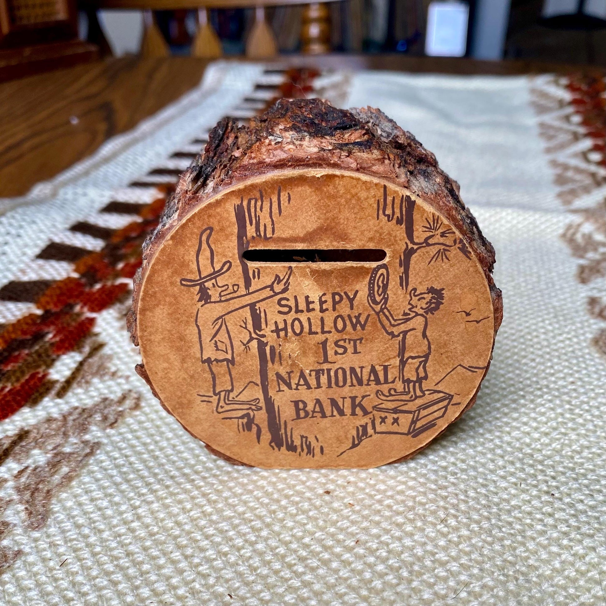 Bob Evan’s Farm’s Sleepy Hollow Wooden Raw Edge Coin Bank