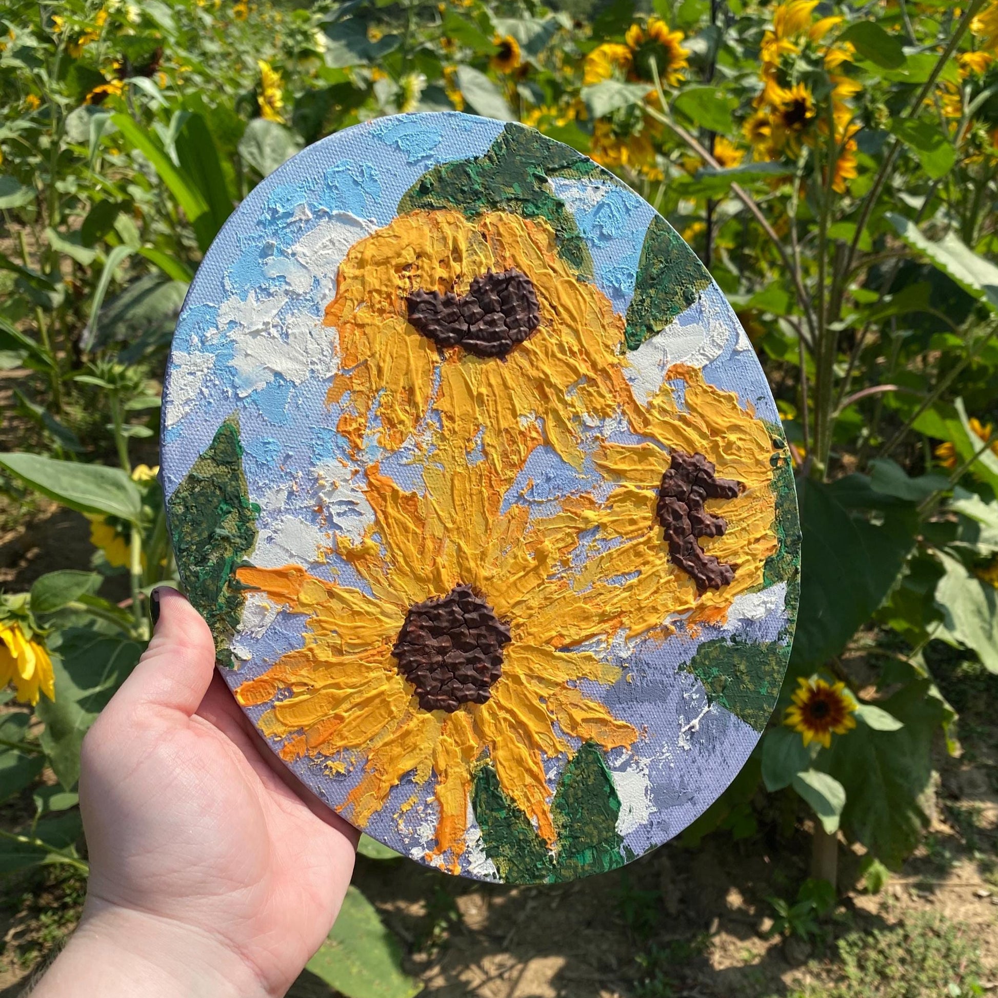 Hand Painted Textured Sunflower Painting Acrylic on Canvas Using Palette Knife