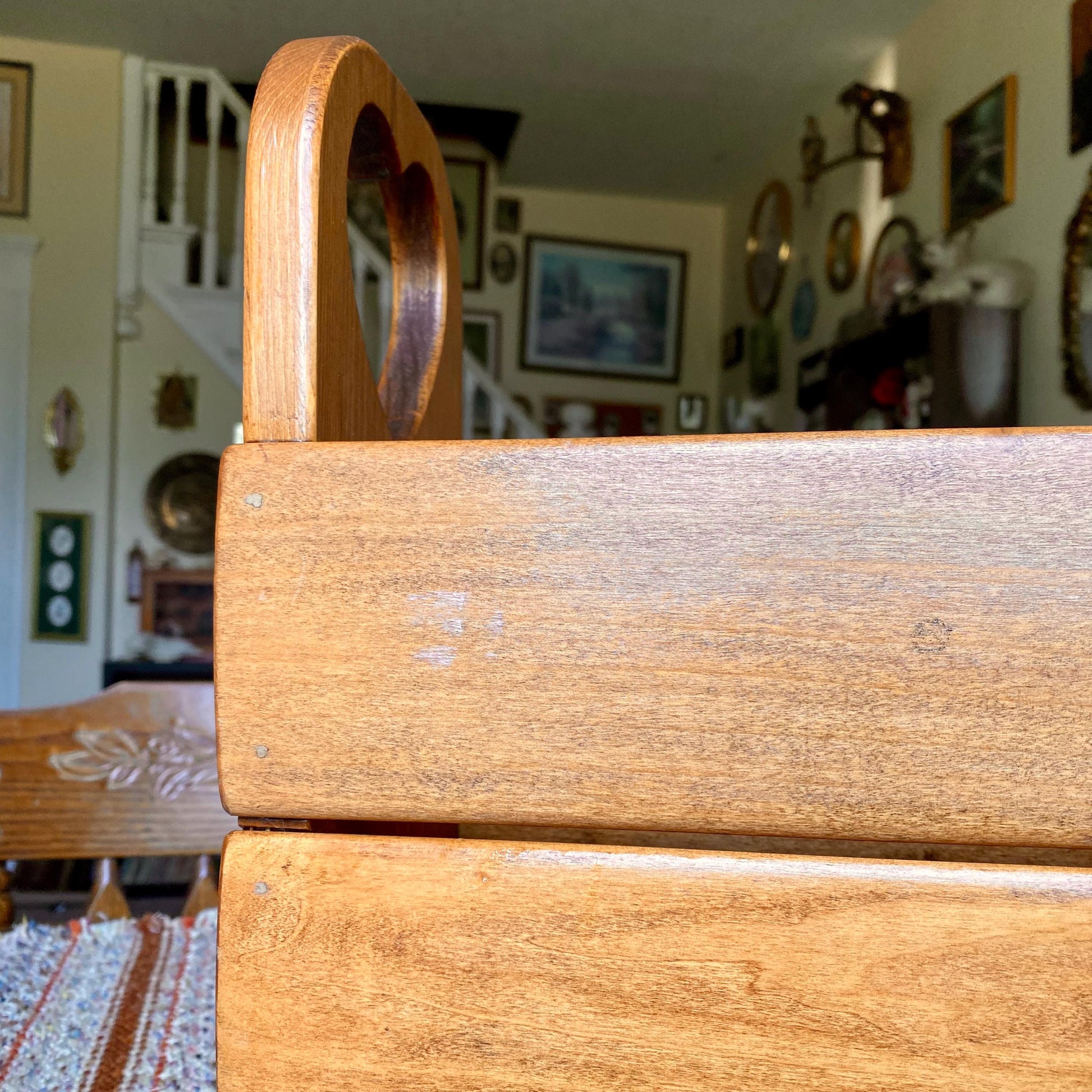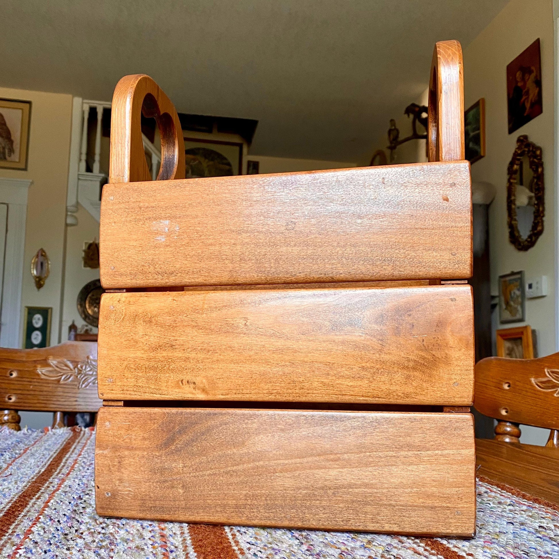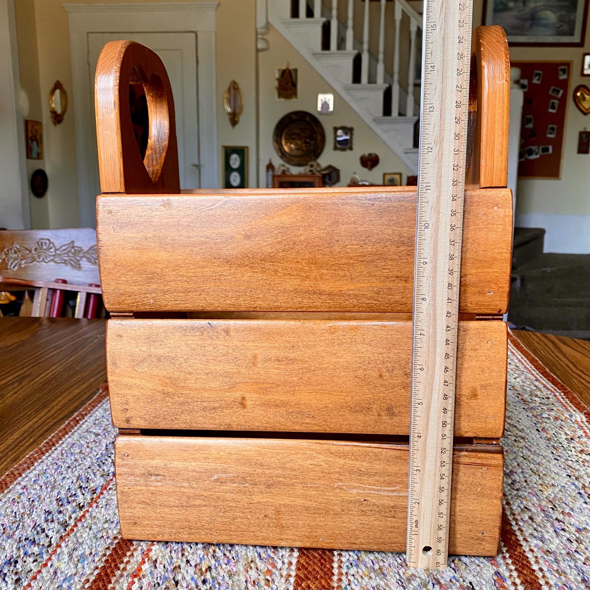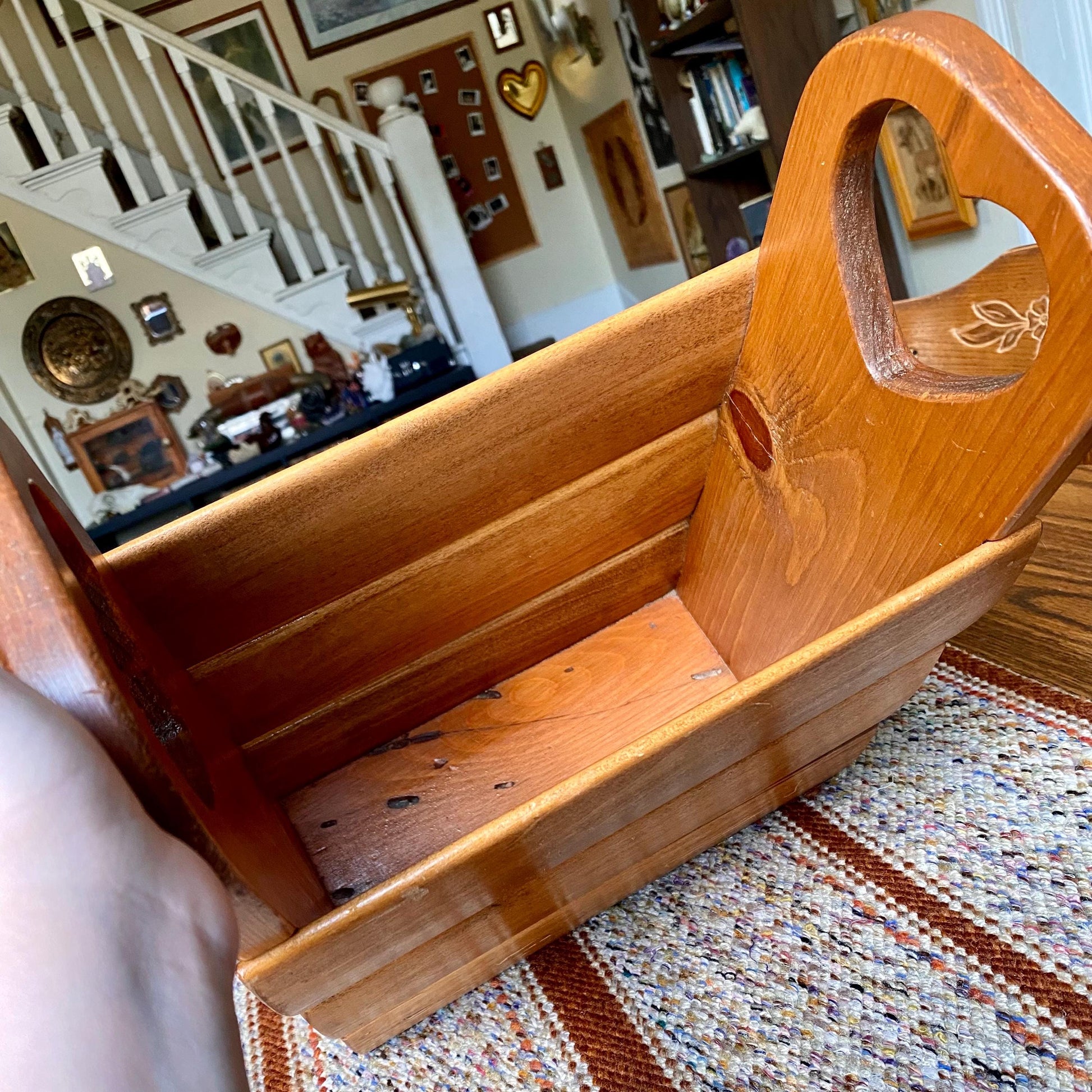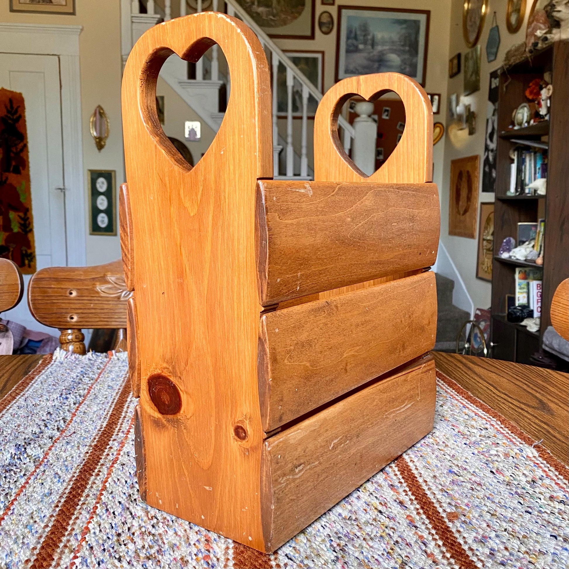 Handmade Vintage Solid Wood Magazine Holder with Heart Cut Outs