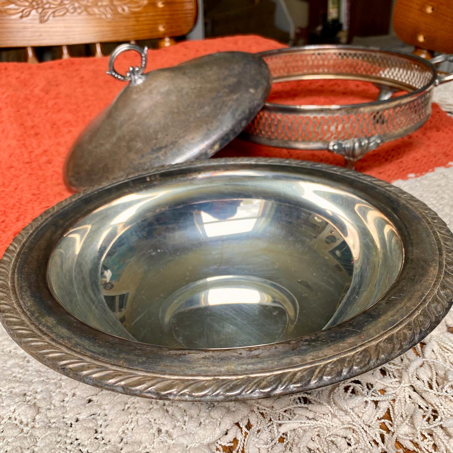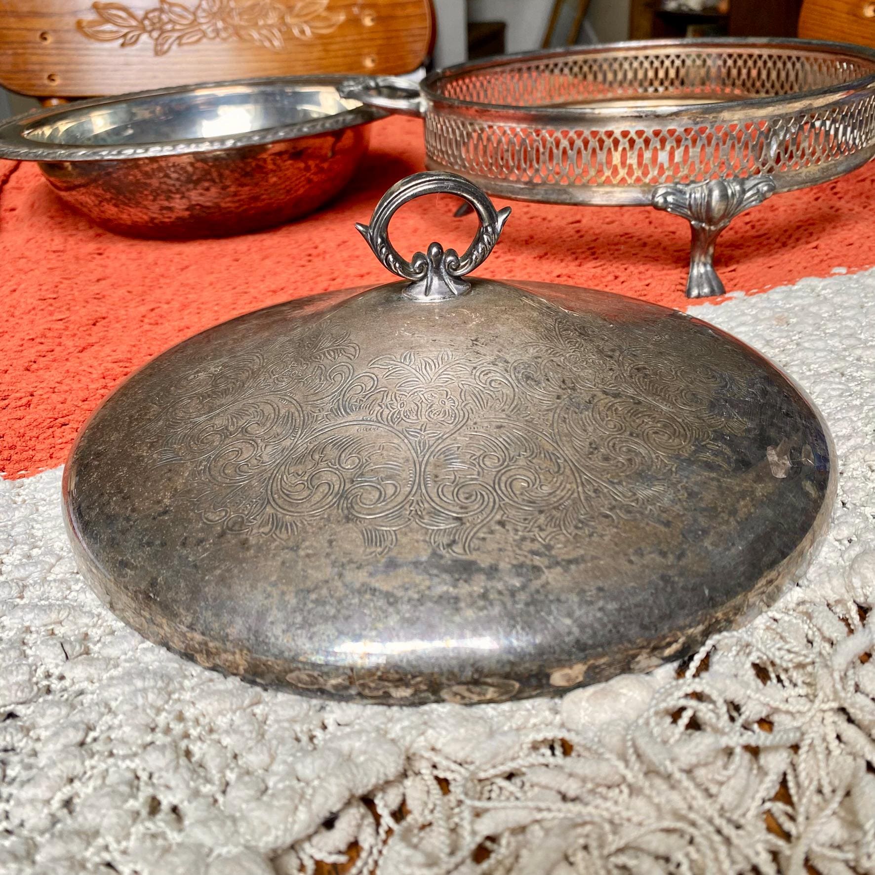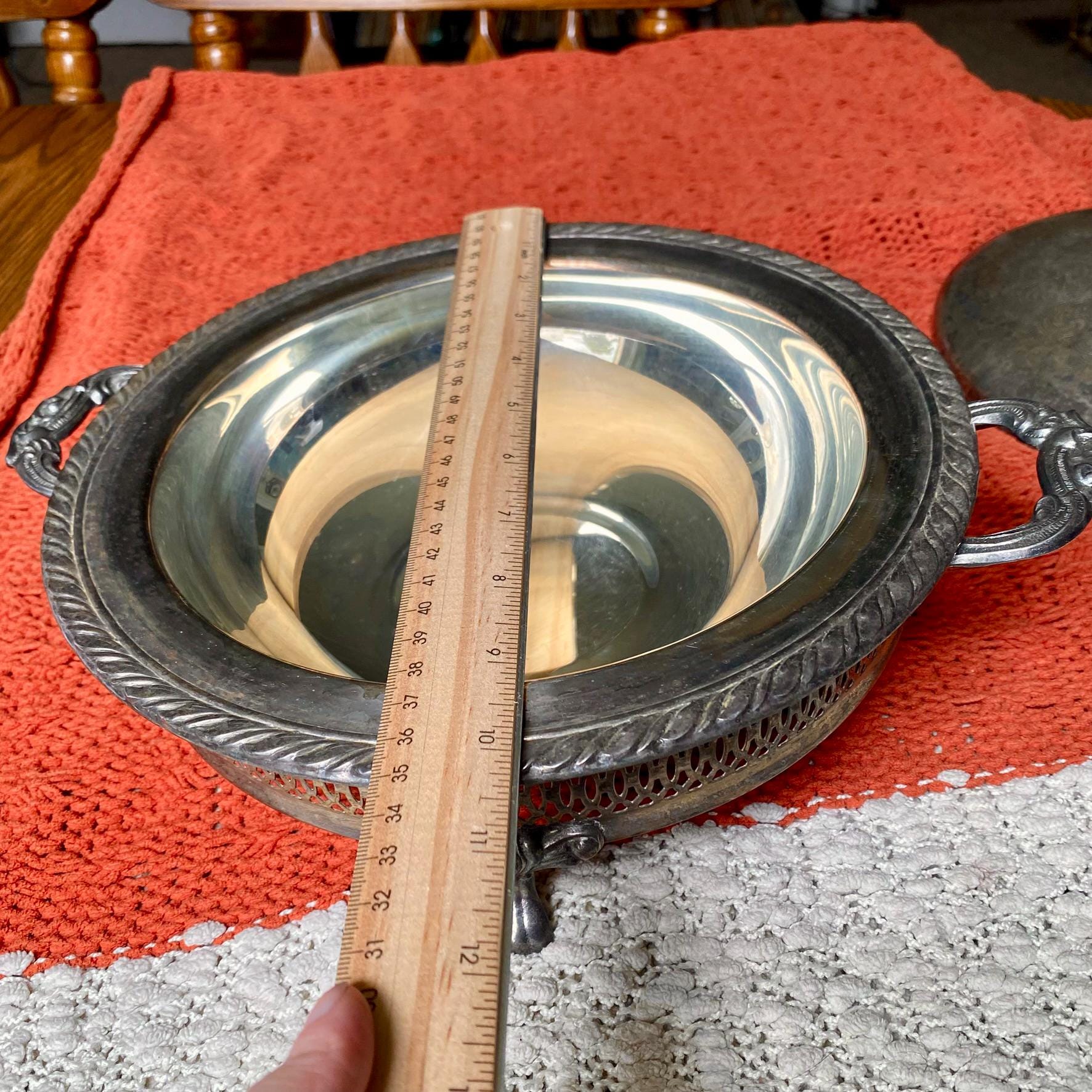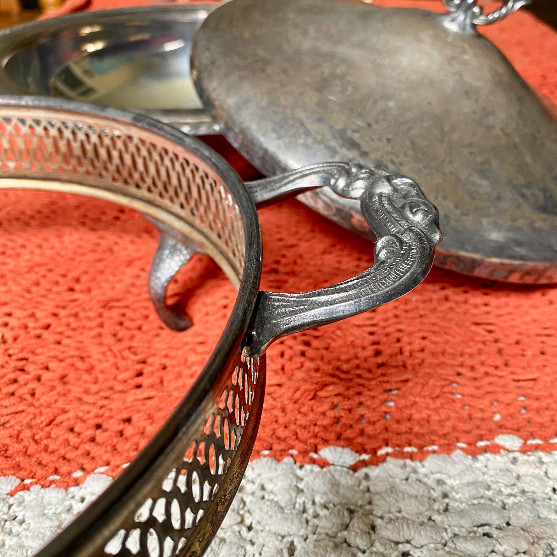 Mid-Century Footed Silver Plated Covered Chafing Dish Casserole Warmer