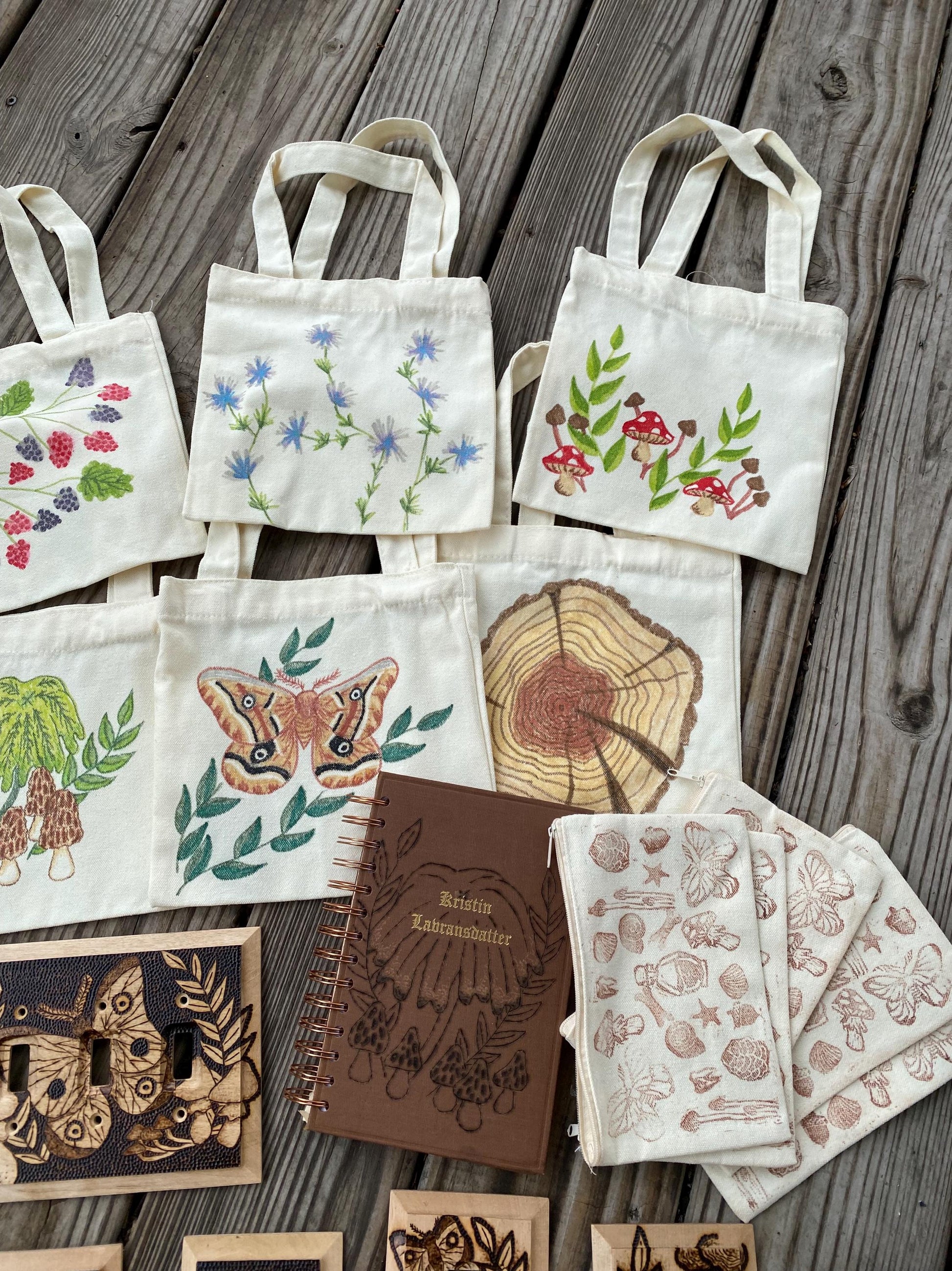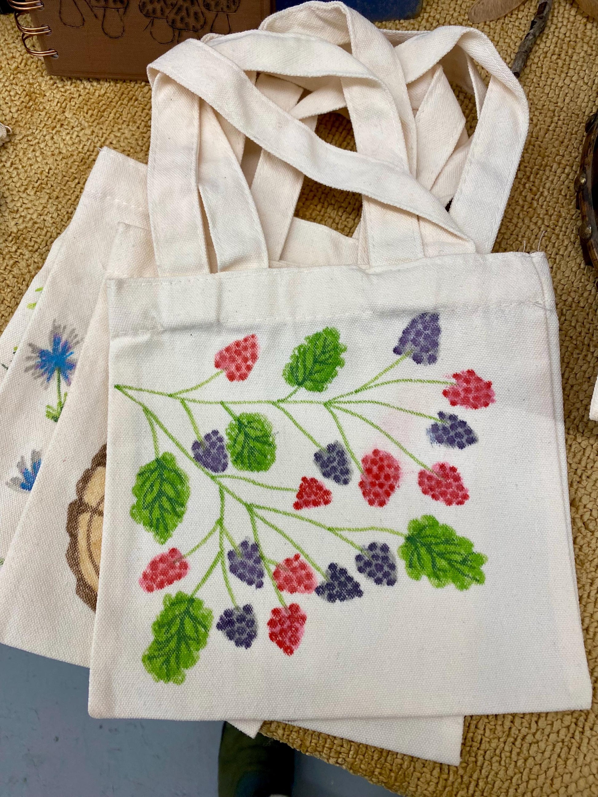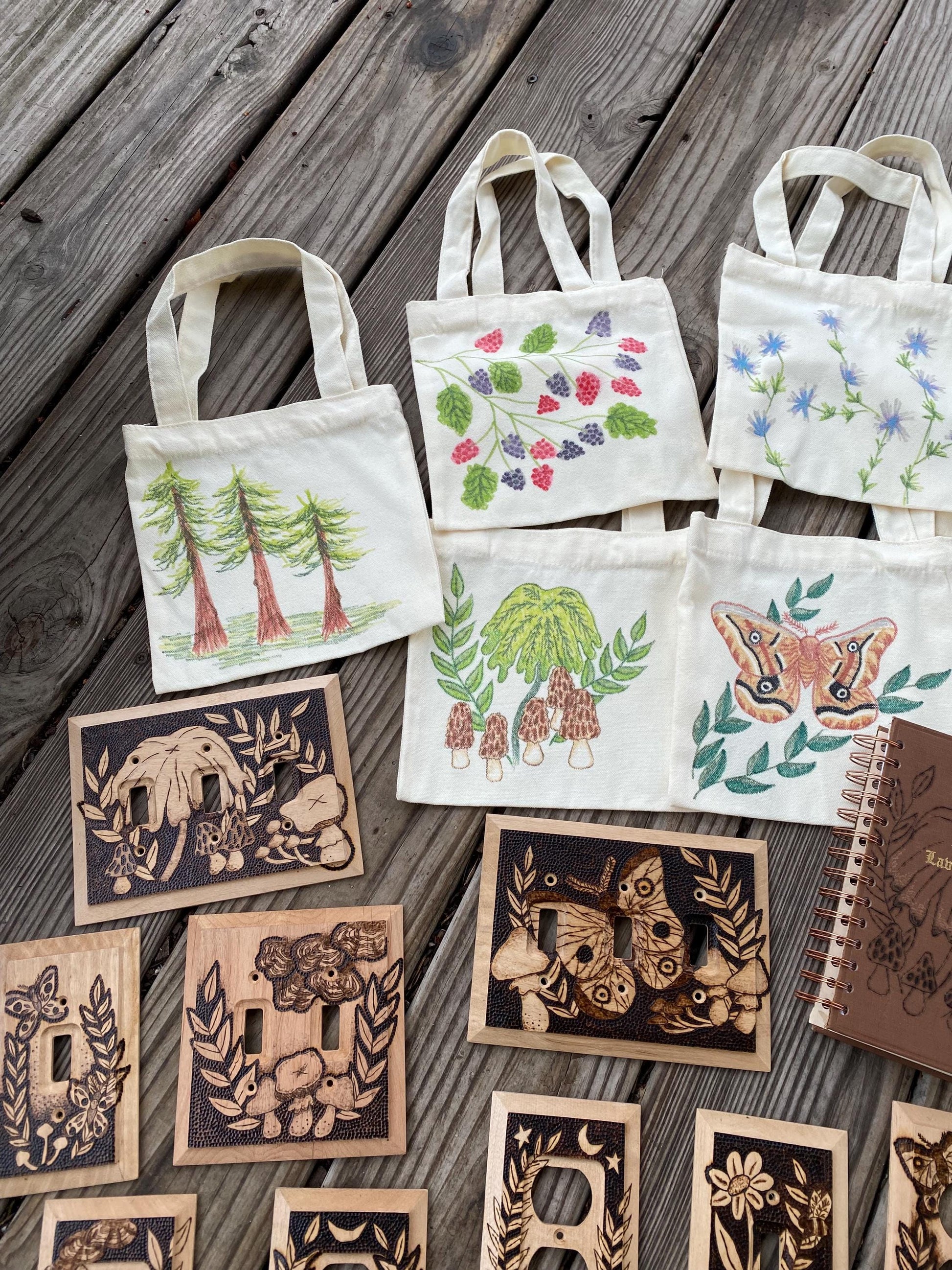 Hand drawn nature themed mini totes!
