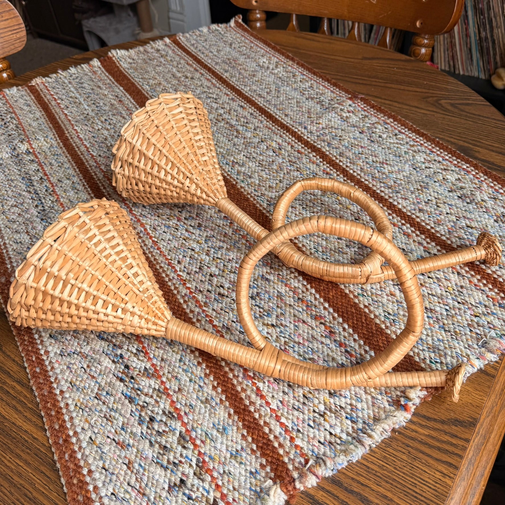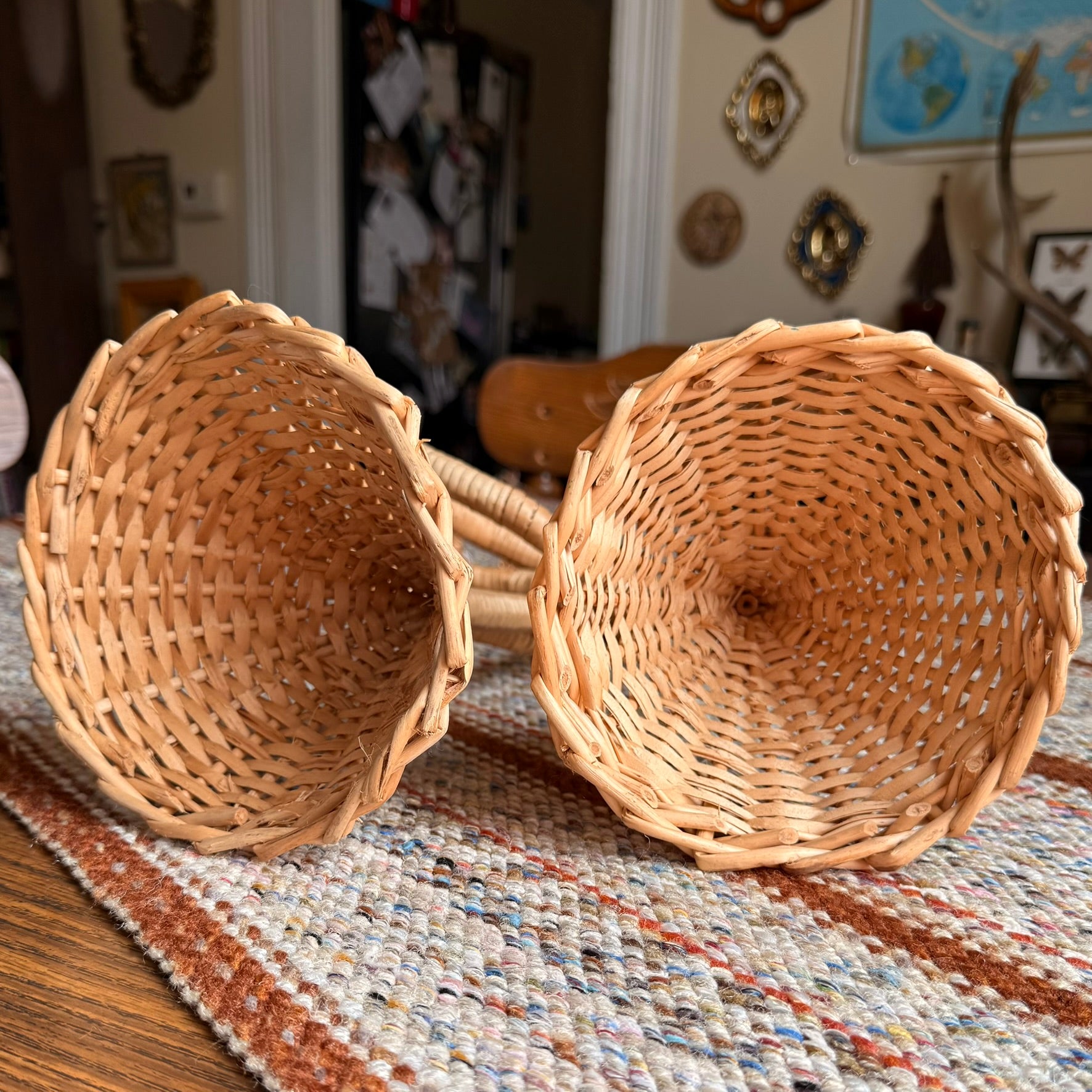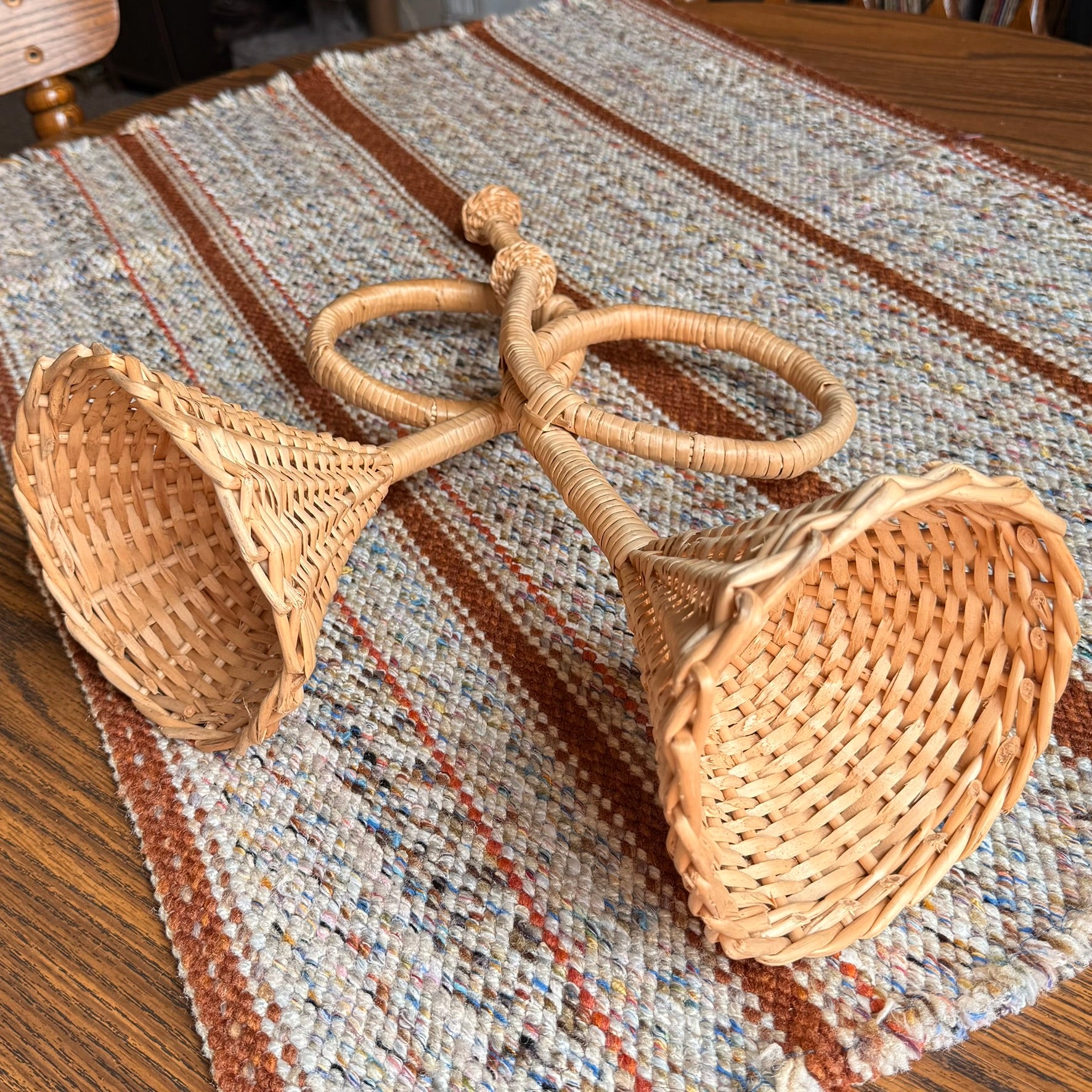 ONE - Vintage 1980s Wicker / Rattan French Horn Shaped Basket