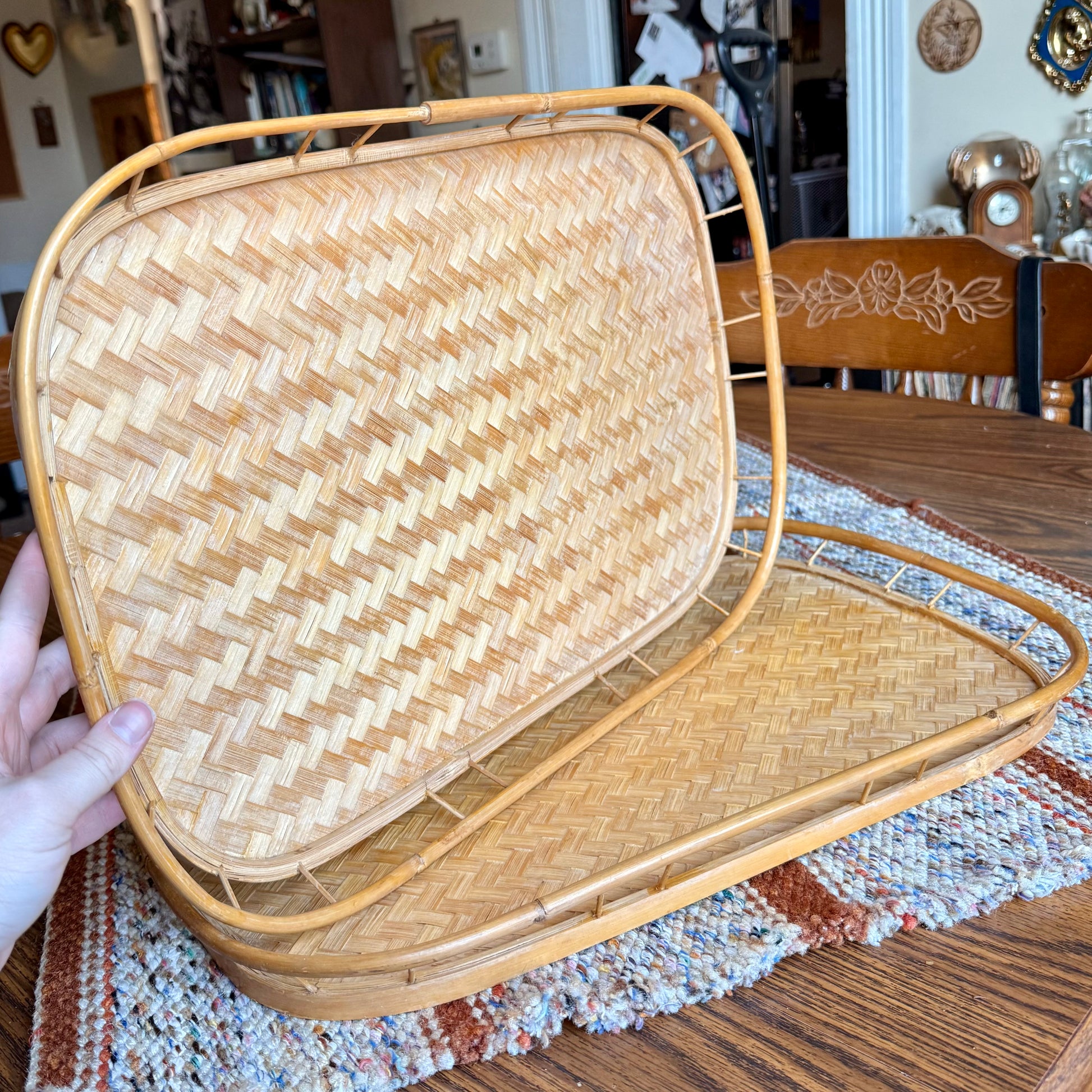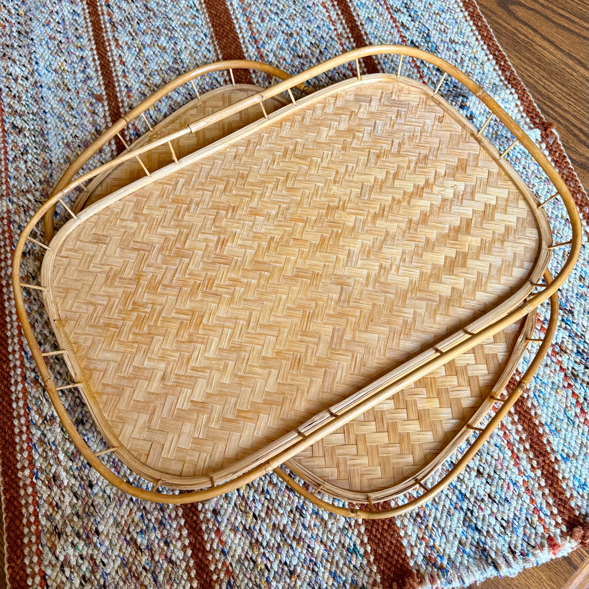 ONE - Vintage Mid-Century Modern Woven Bamboo Basket Serving / Trinket Tray