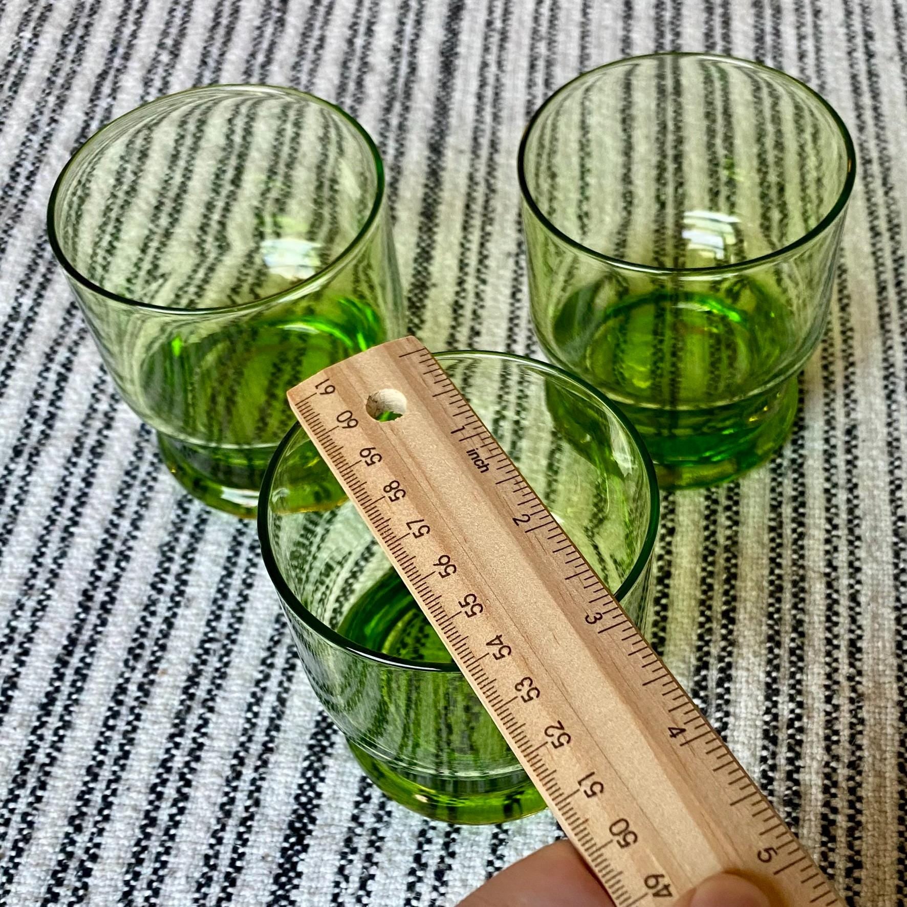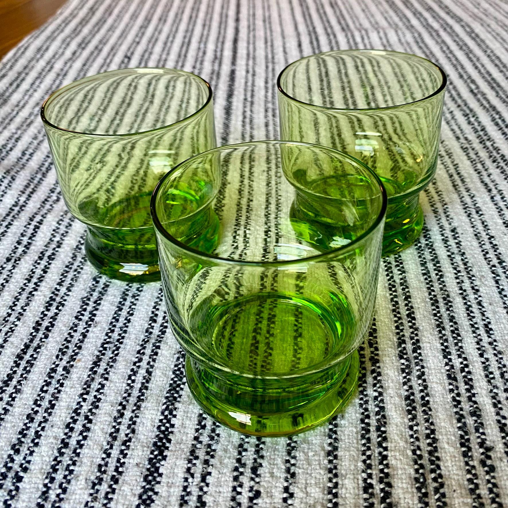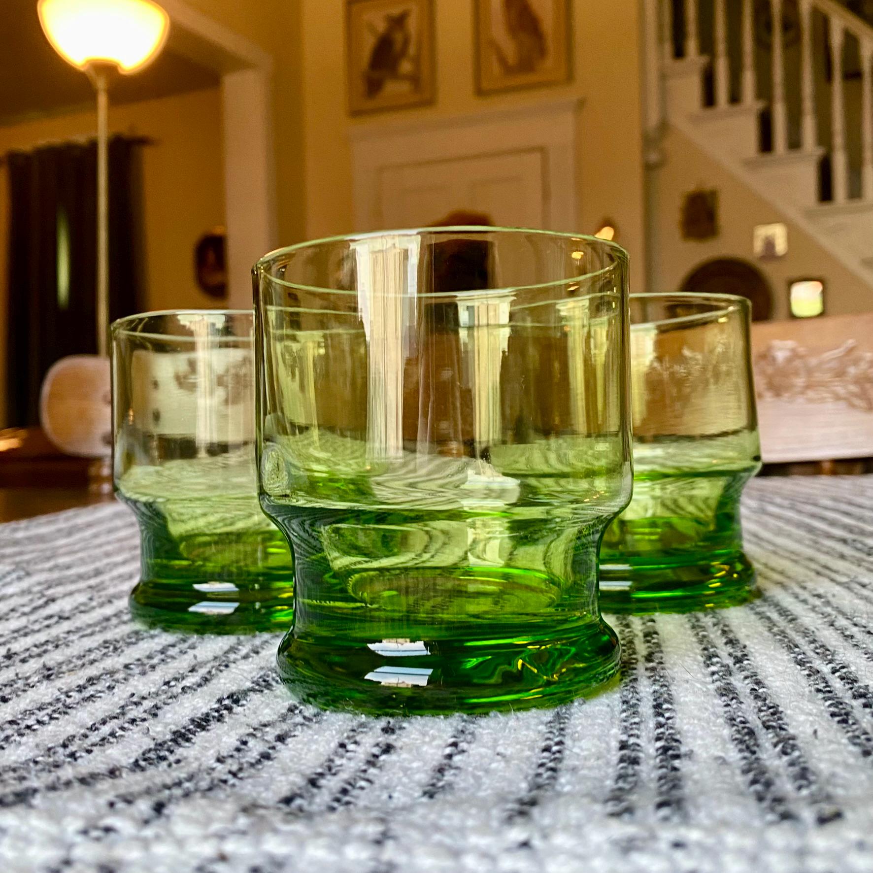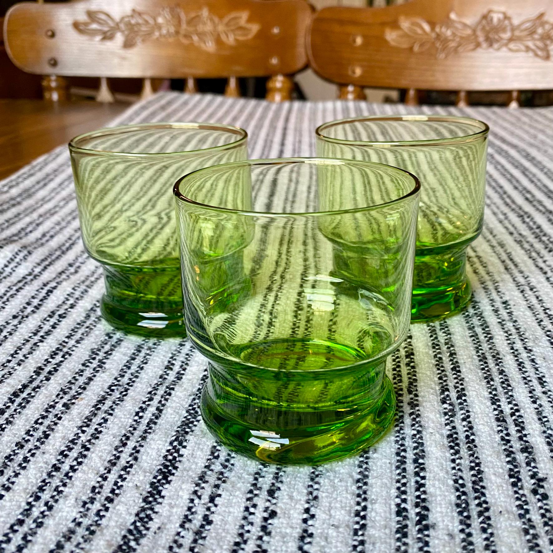 Set of 3 Vintage 1980s Green Green Apple Cocktail Tumblers, Heavy, Double Base
