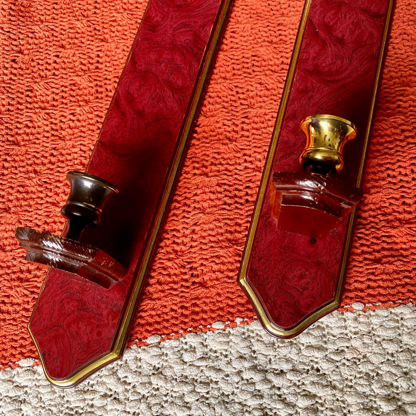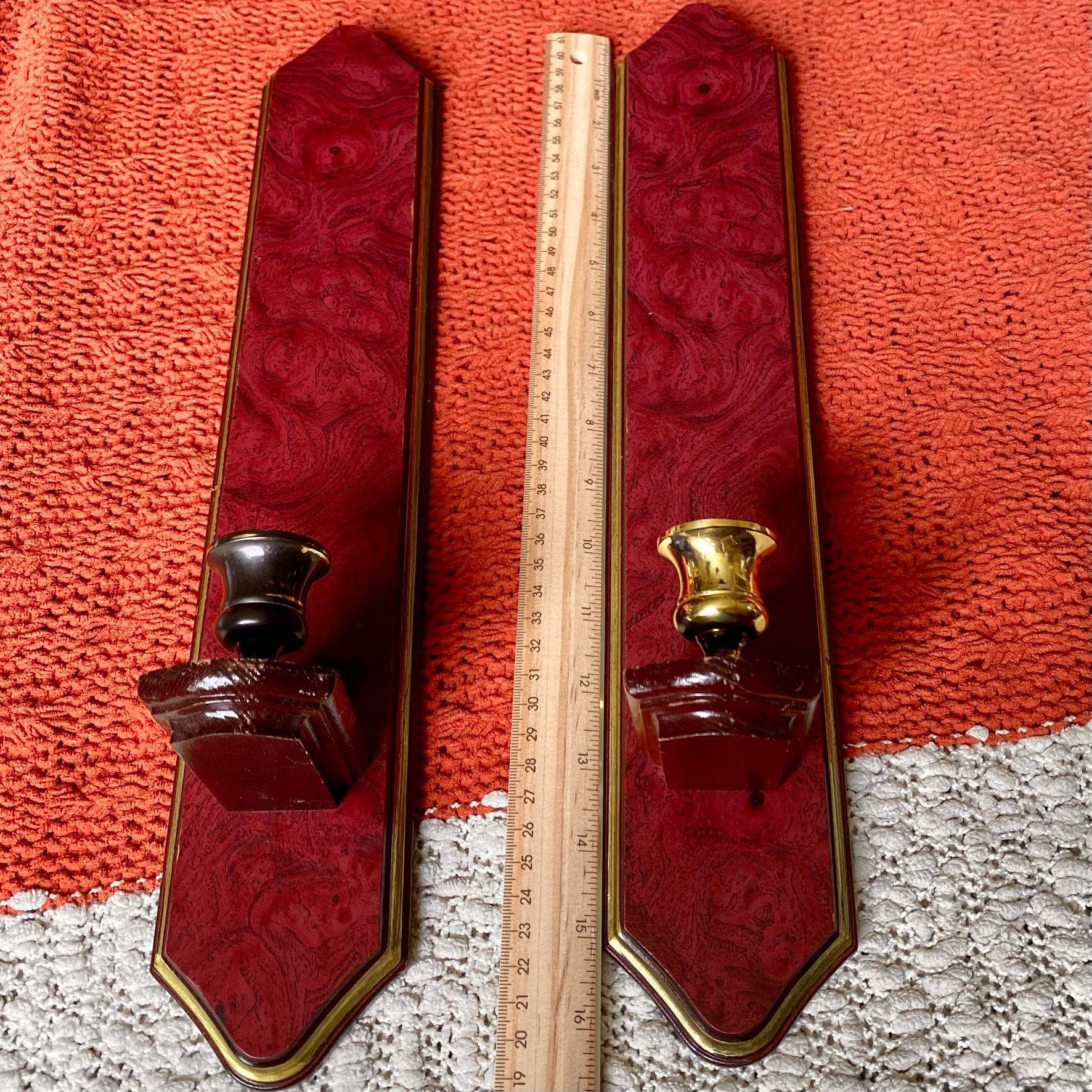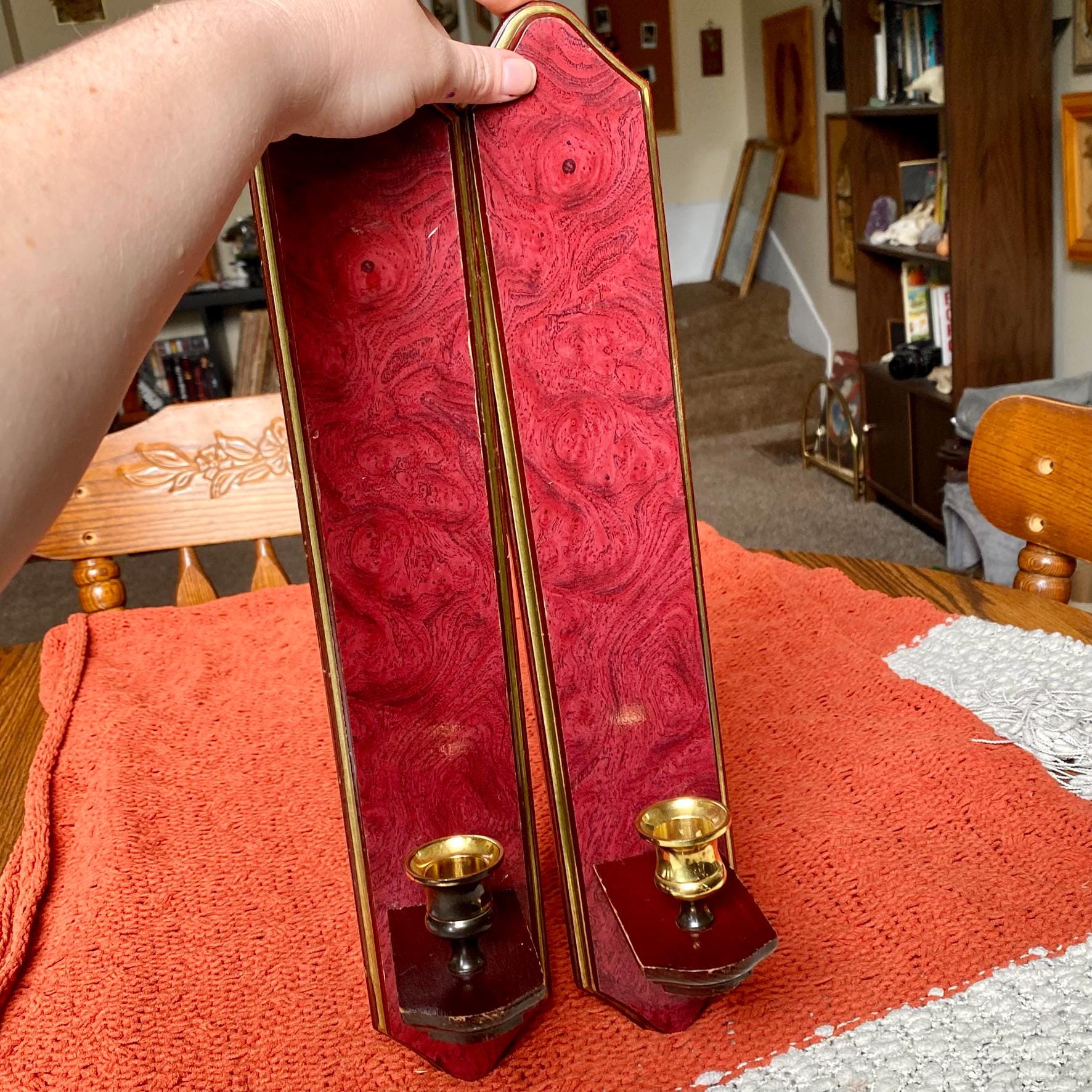 Set of Two Vintage Home Interiors Cherry Wood Wall Sconce / Candle Holders