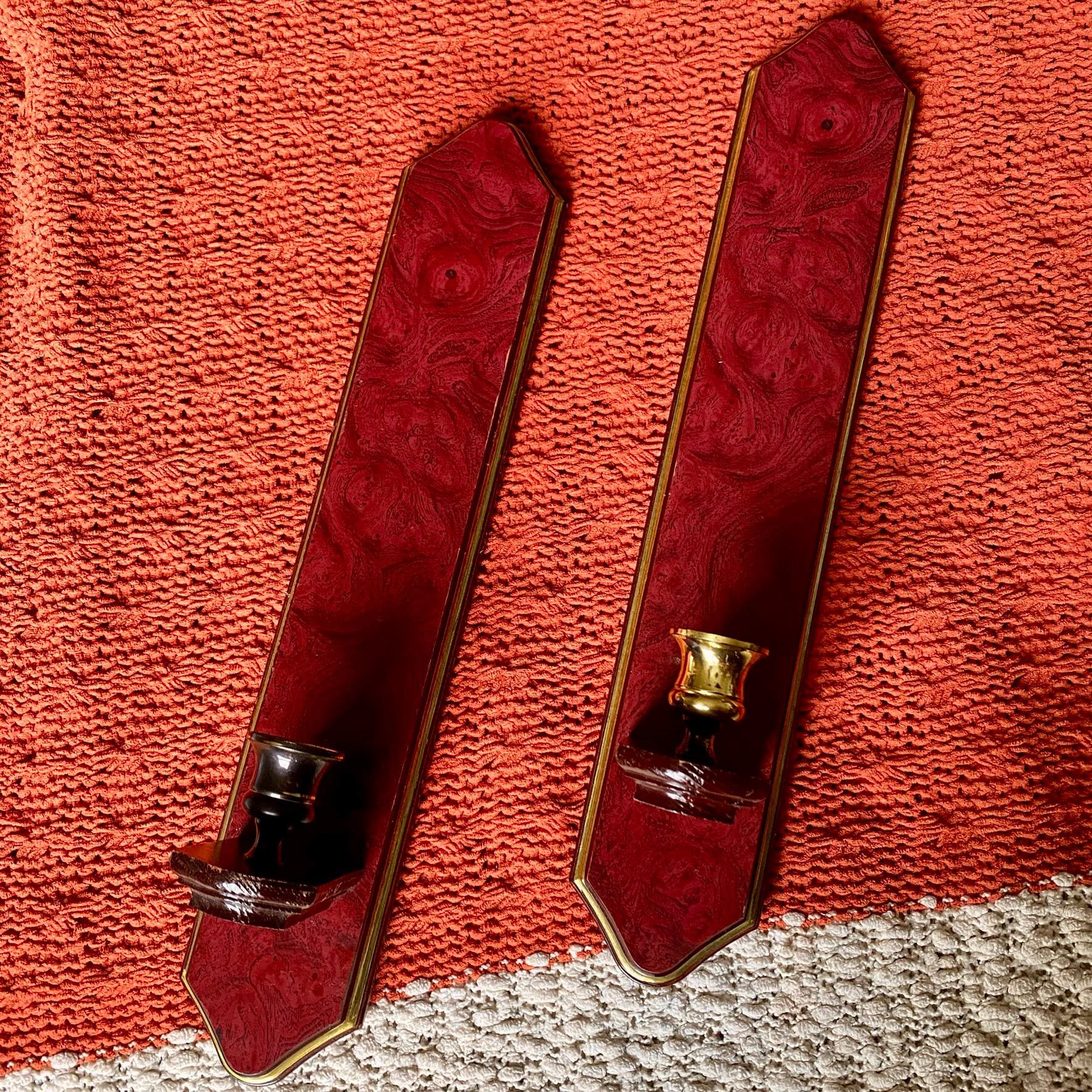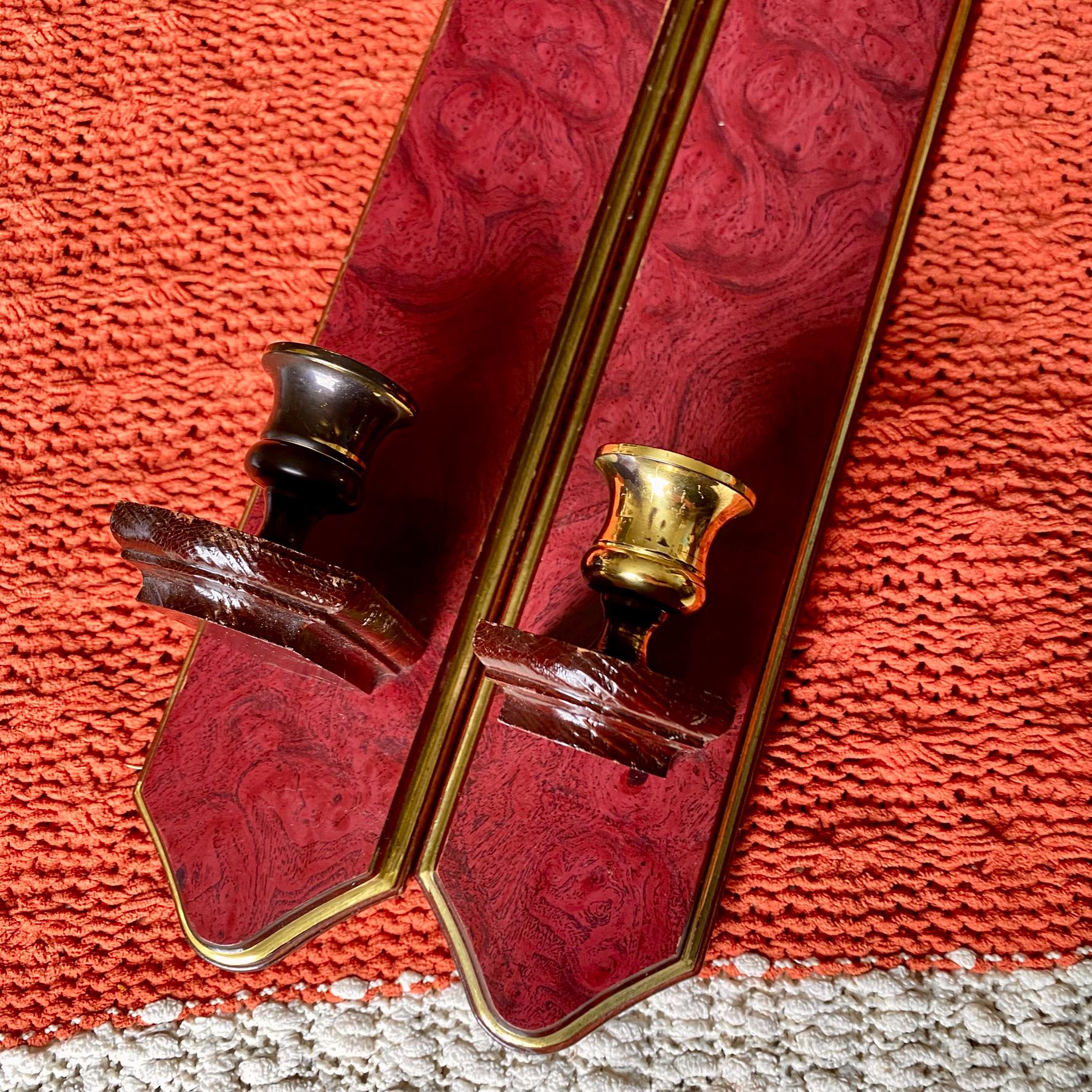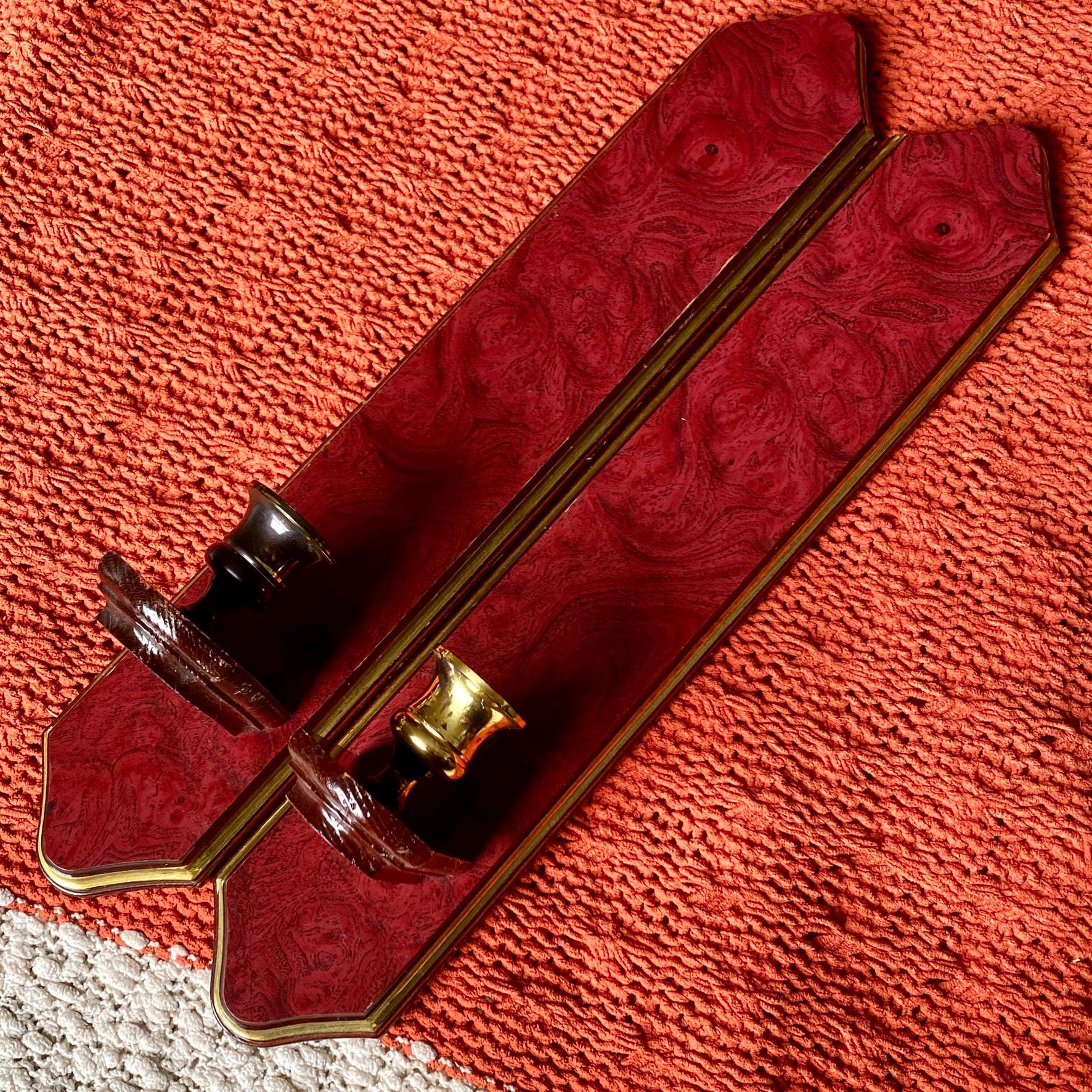 Set of Two Vintage Home Interiors Cherry Wood Wall Sconce / Candle Holders