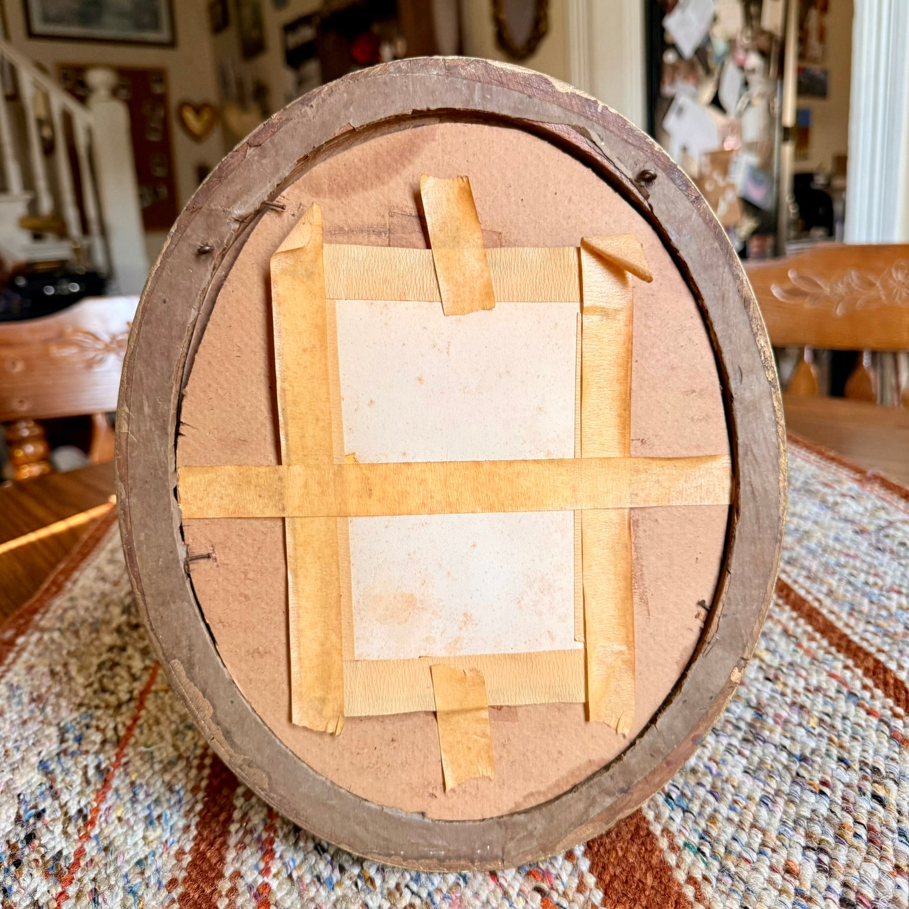 The product is an antique baby photo displayed in an antique Victorian gold gilt ornate oval frame. This collectible decorative piece adds a touch of vintage charm to any space, showcasing the intricate design and detailing of the Victorian era. The oval shape and gilt finish enhance the overall aesthetic, making it a stylish and unique addition to any home decor.
