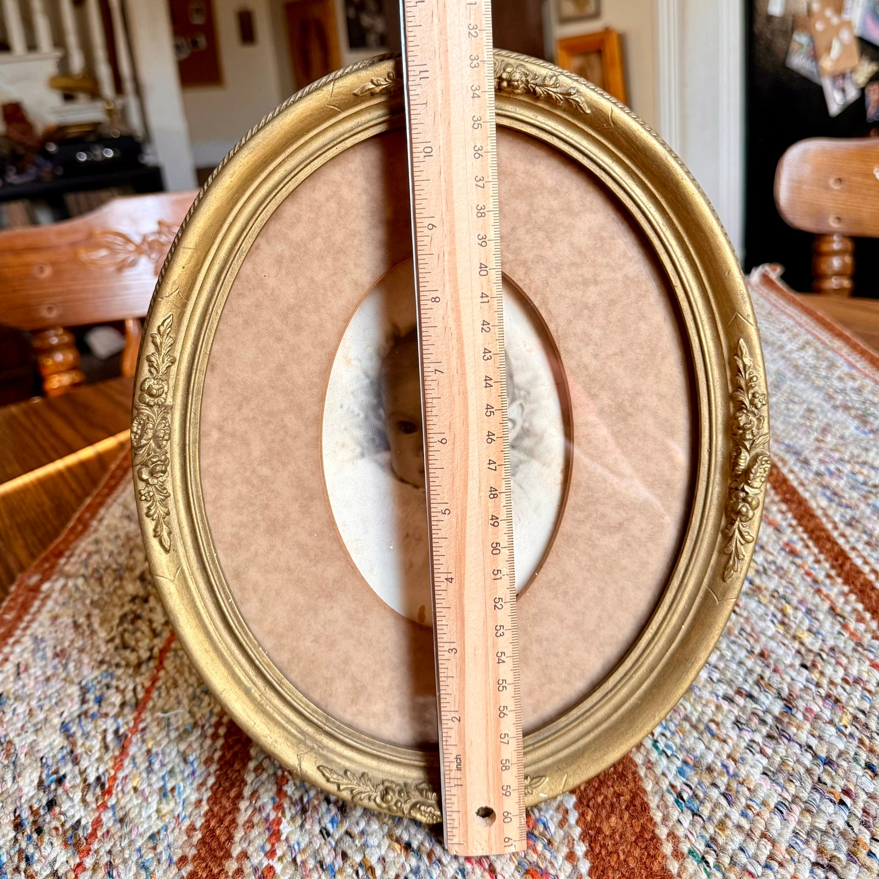 Antique Baby Photo in Antique Victorian Gold Gilt Ornate Oval Frame
