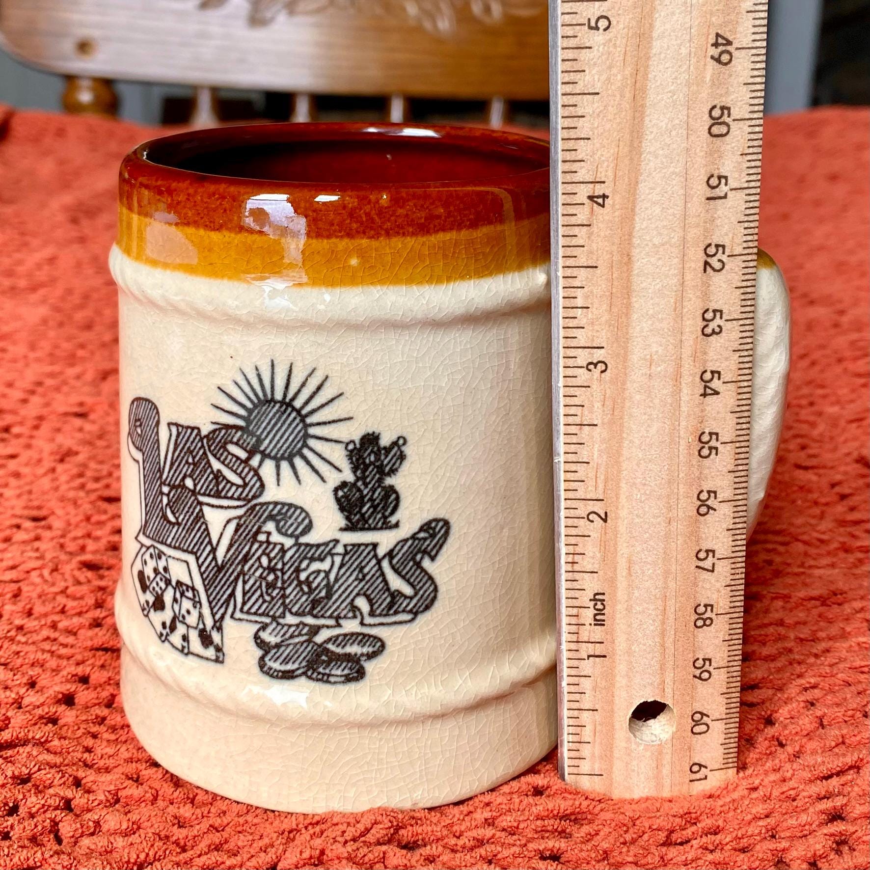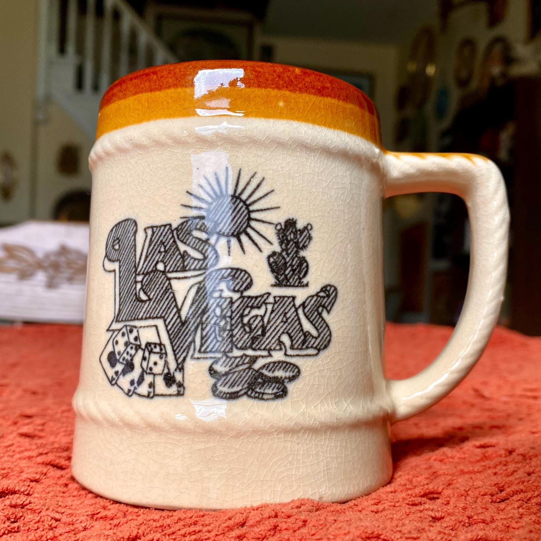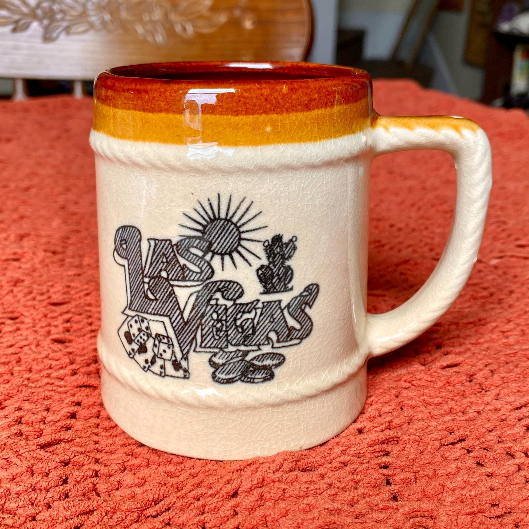Vintage 70s Graphic Las Vegas Retro Souvenir Beer Mug w/ Rope Trim