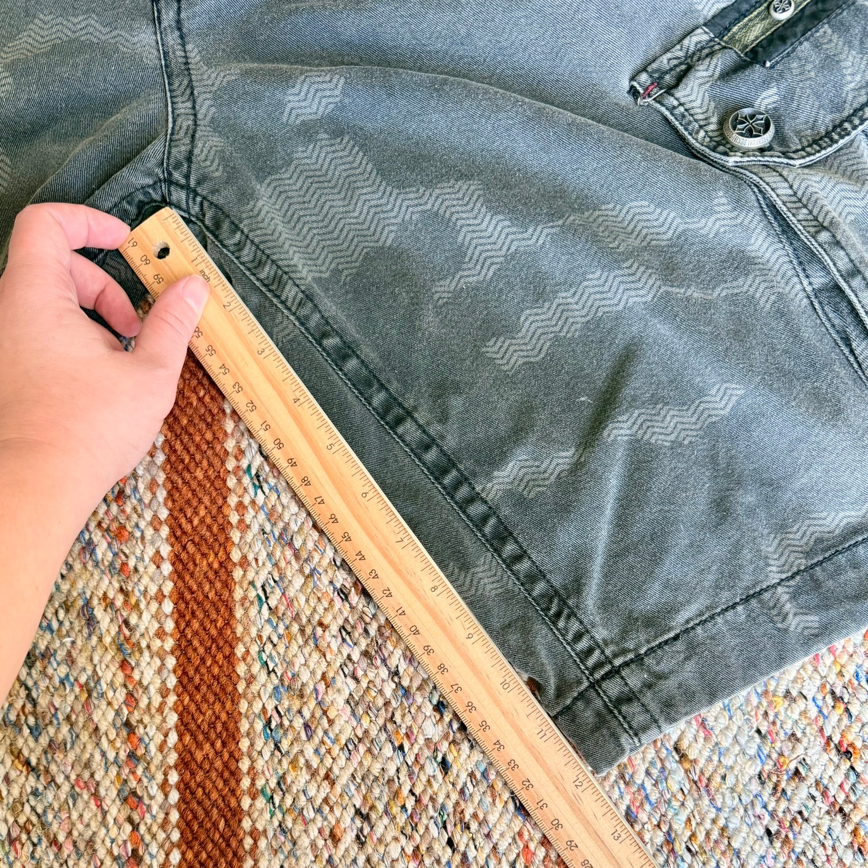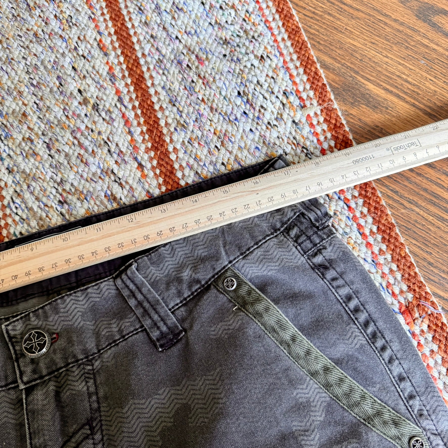 The Vintage 90s / 2000s y2k Affliction Grunge Camo Cargo Shorts are a stylish addition to any man's wardrobe. Featuring a multicolor camo design, these cargo shorts in size 32 offer a rugged 90s vibe perfect for a casual, edgy look. With a regular fit and a waist size of 32 inches, these shorts offer comfort and style for everyday wear.