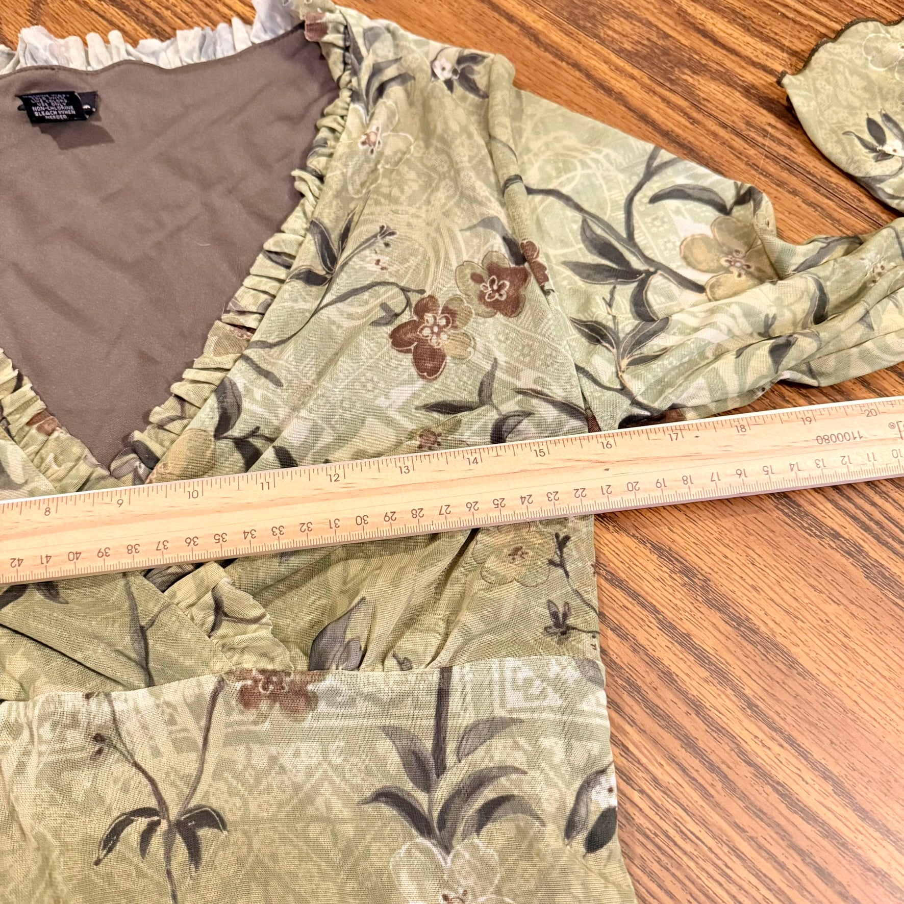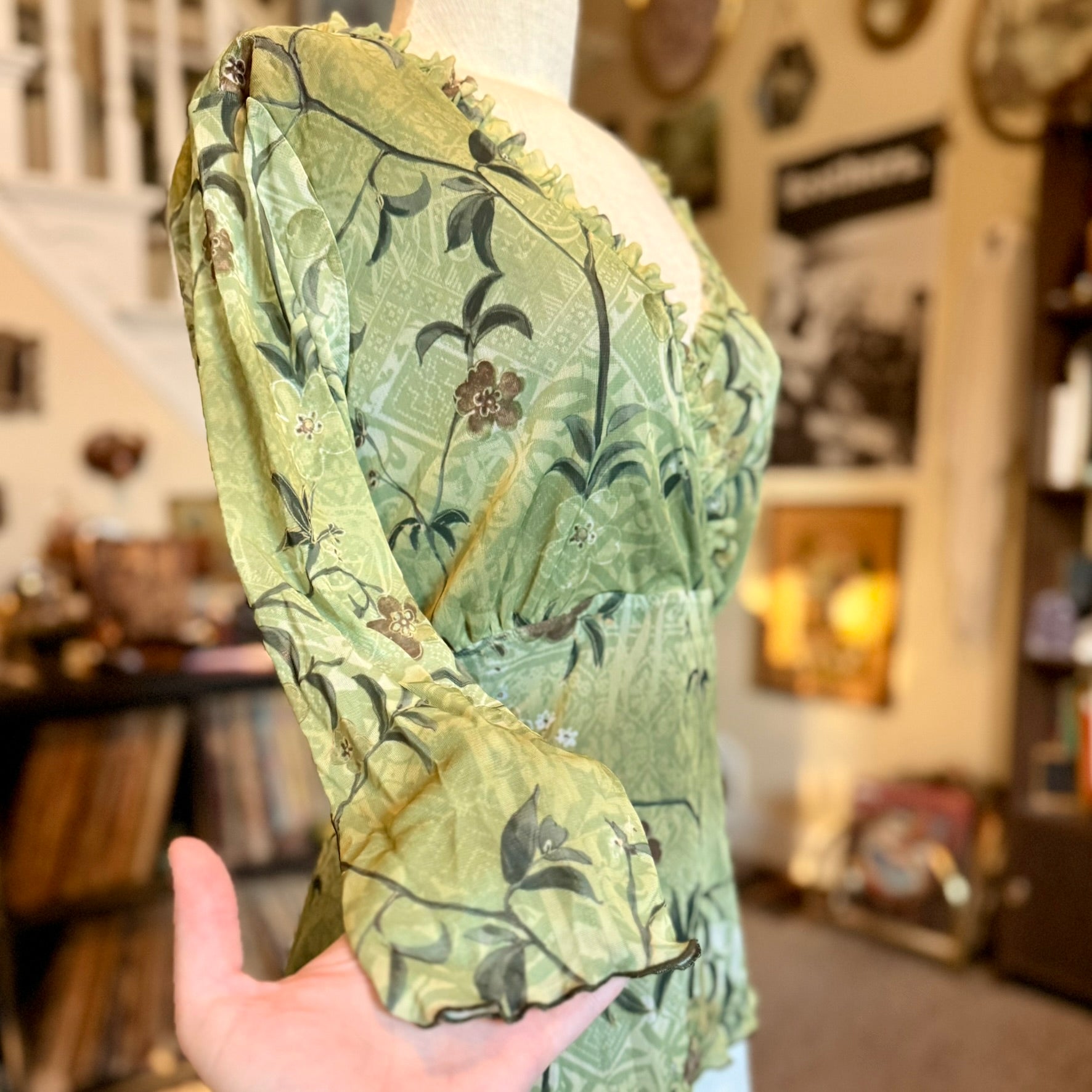 Vintage 90s / 2000s y2k Assoluto Ruffled Jungle Floral Fairy Baby Doll Top