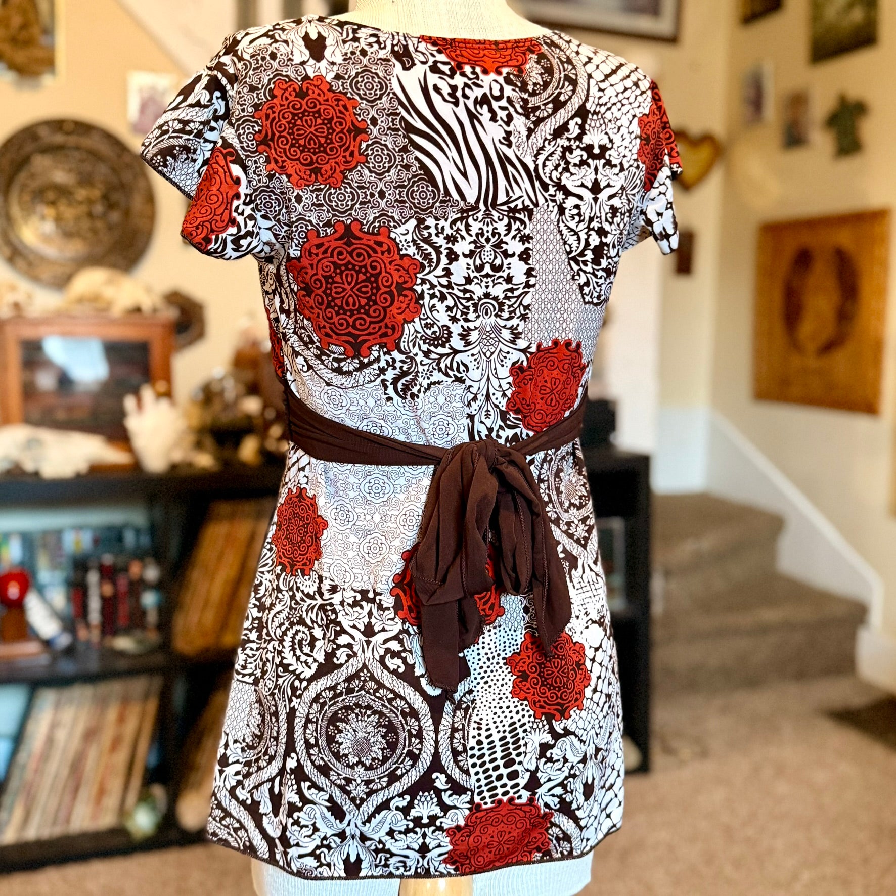 Vintage 90s / 2000s y2k Studio Y Mandala Patterned Baby Doll Top