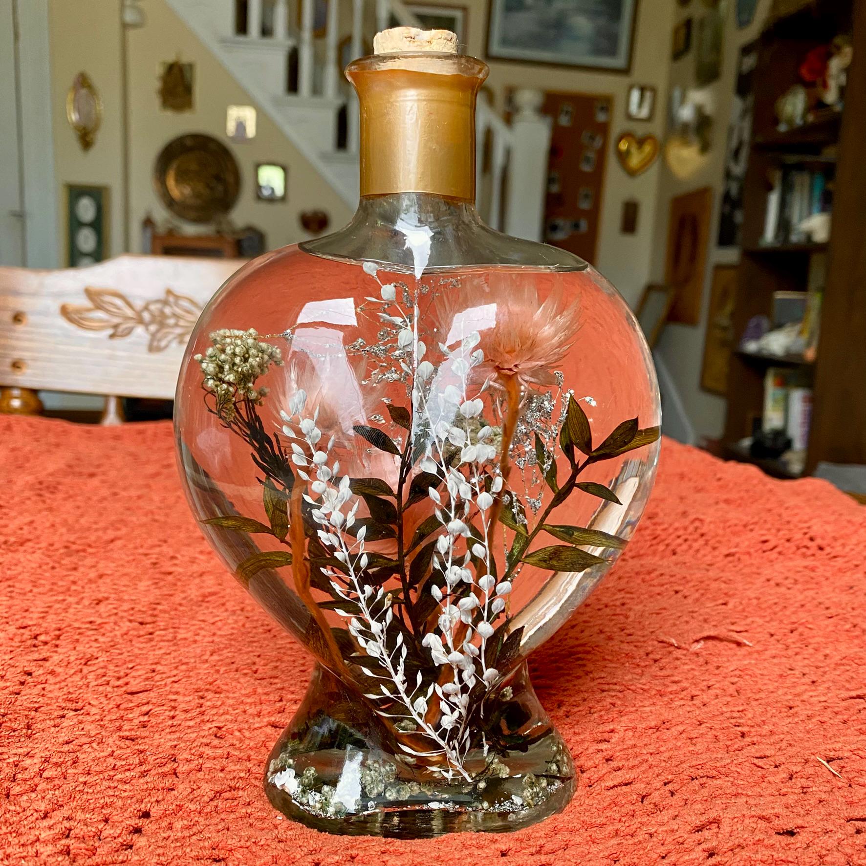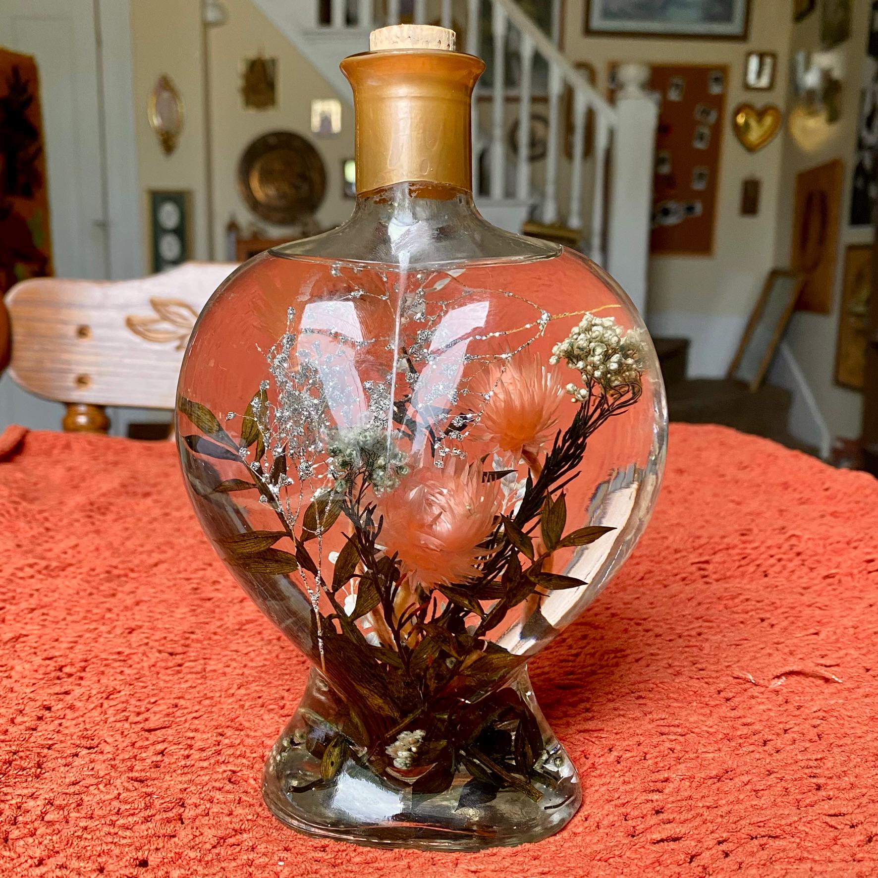 Vintage Aroma Art Floral Design Bath & Body Botanical Oil - Heart Shaped Bottle with Floral Arrangement
