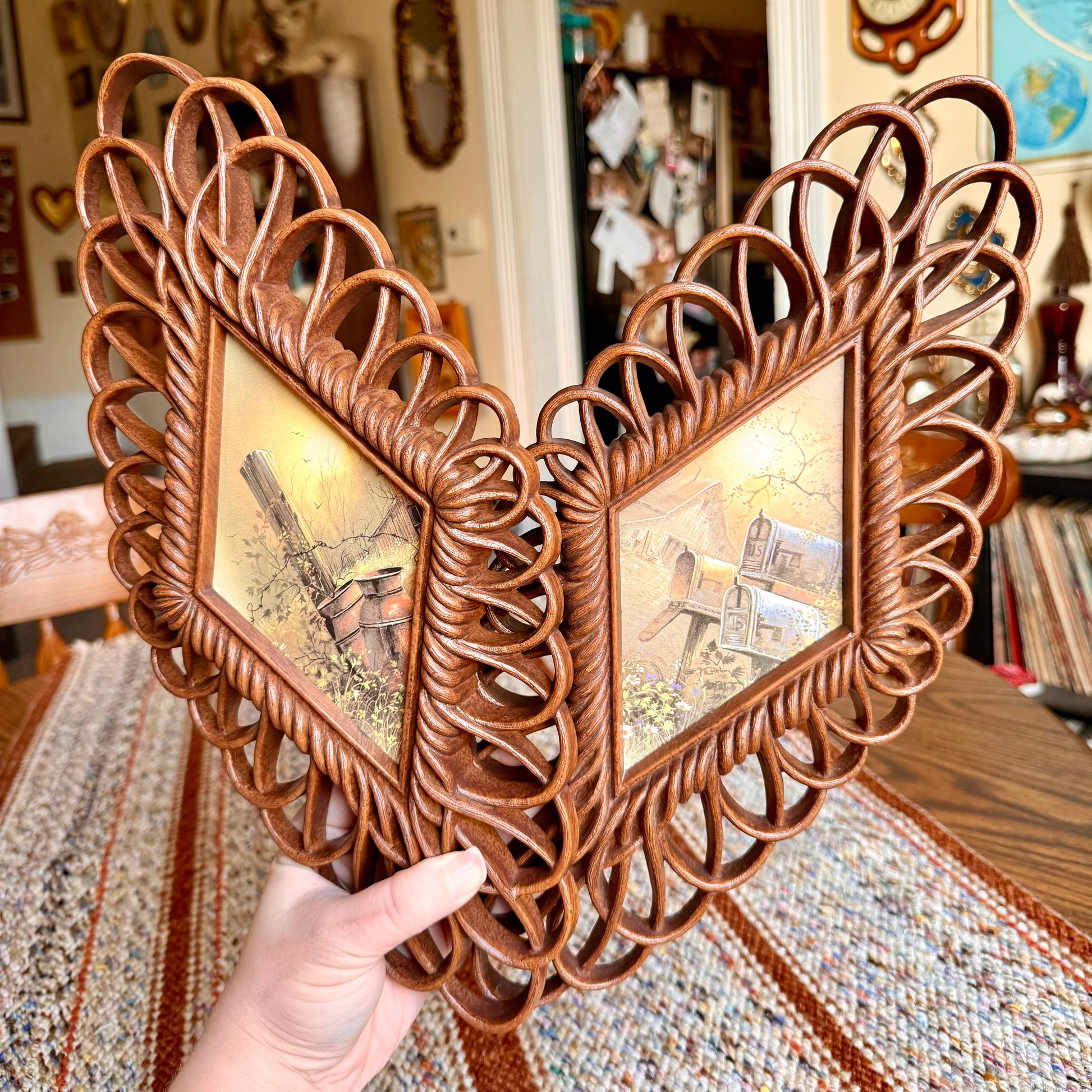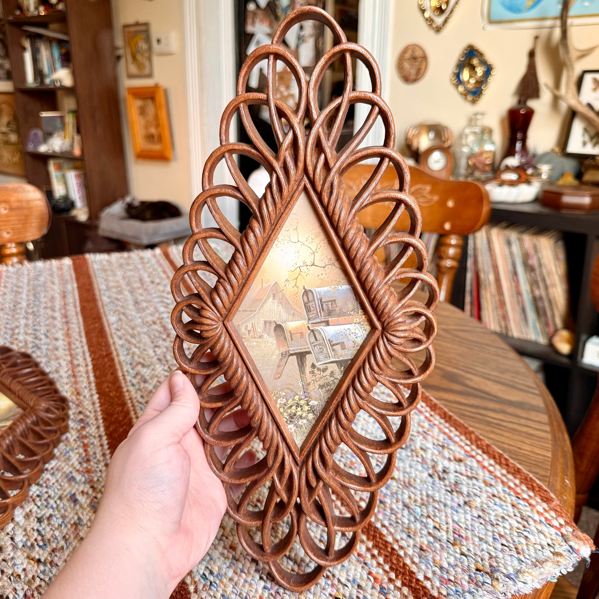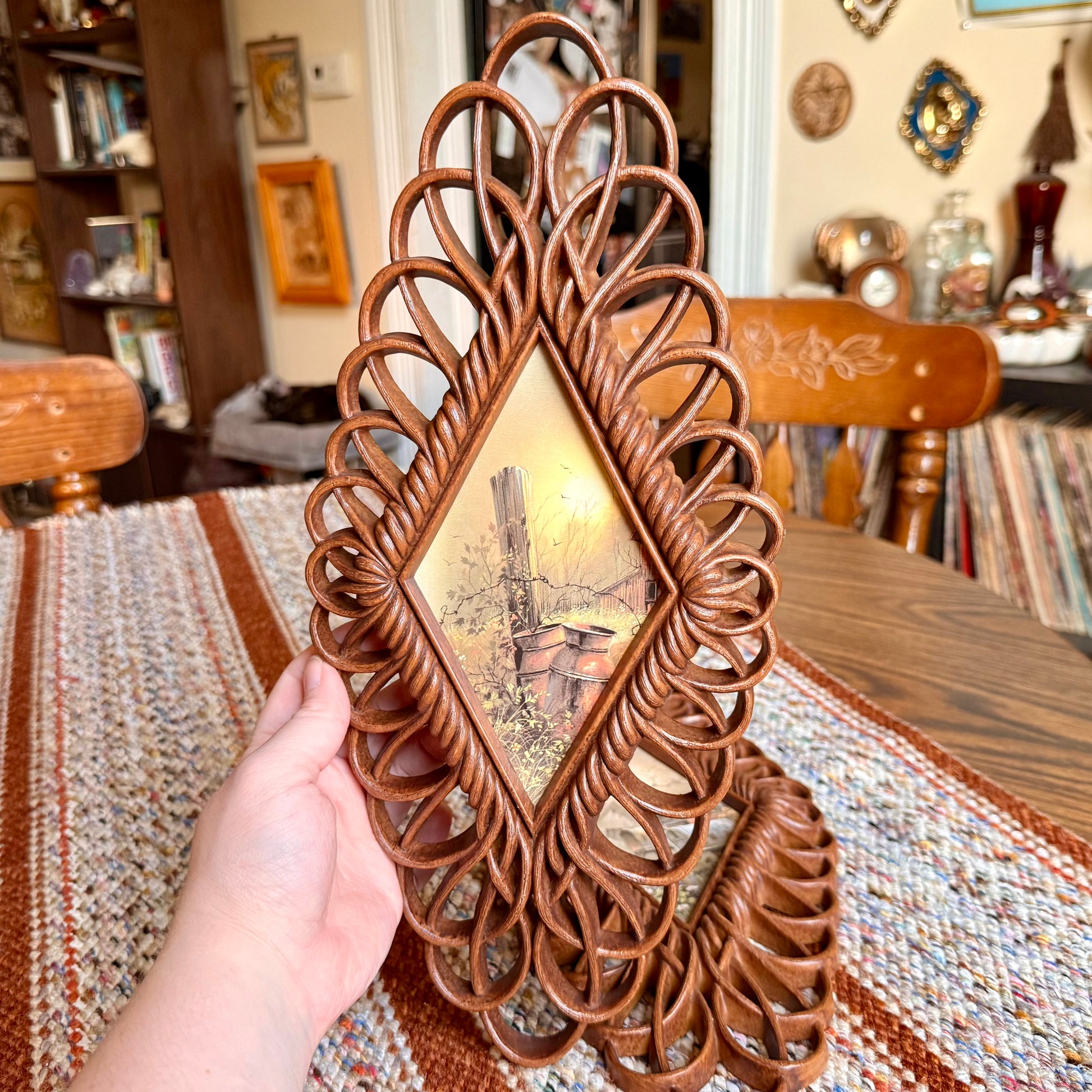 Vintage Burwood Faux Wicker MCM Diamond Farmhouse Country Paintings