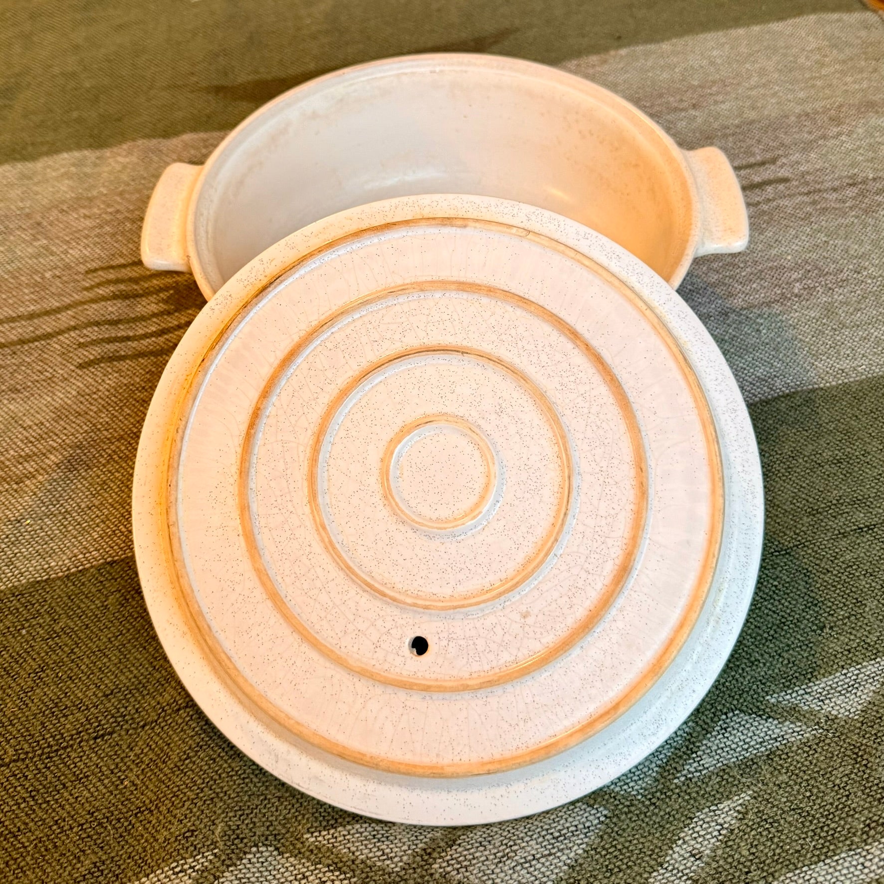 Vintage Flame Chef Stoneware Casserole Dish with Southwestern Tribal Embellishments