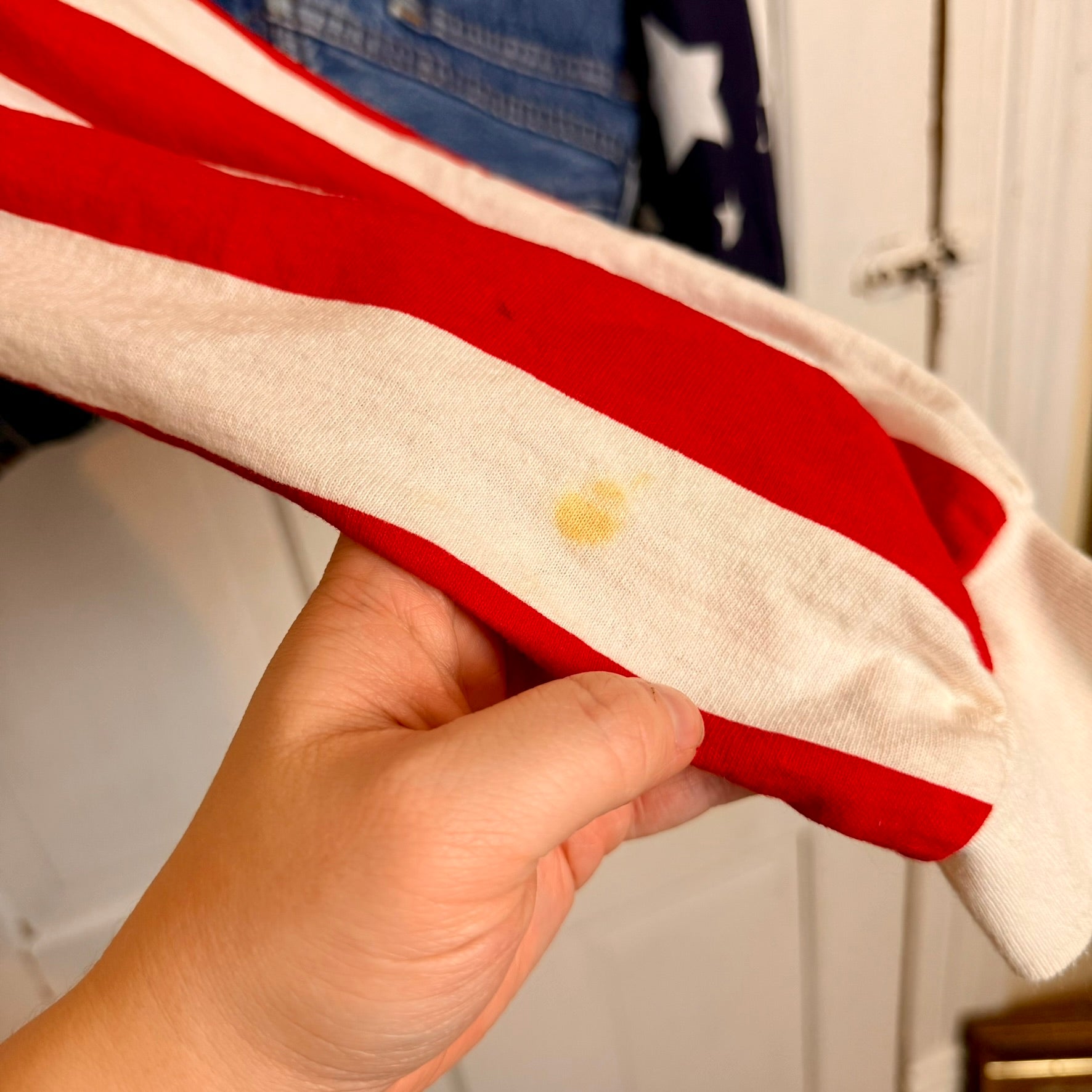 Vintage Frederick's of Hollywood Upcycled Denim Jean American Flag Jacket. Super cool 1980's Frederick's of Hollywood rework using vintage denim, in this case Levi's to create wearable jackets. Stain on sleeve pictured. See measurements for sizing.