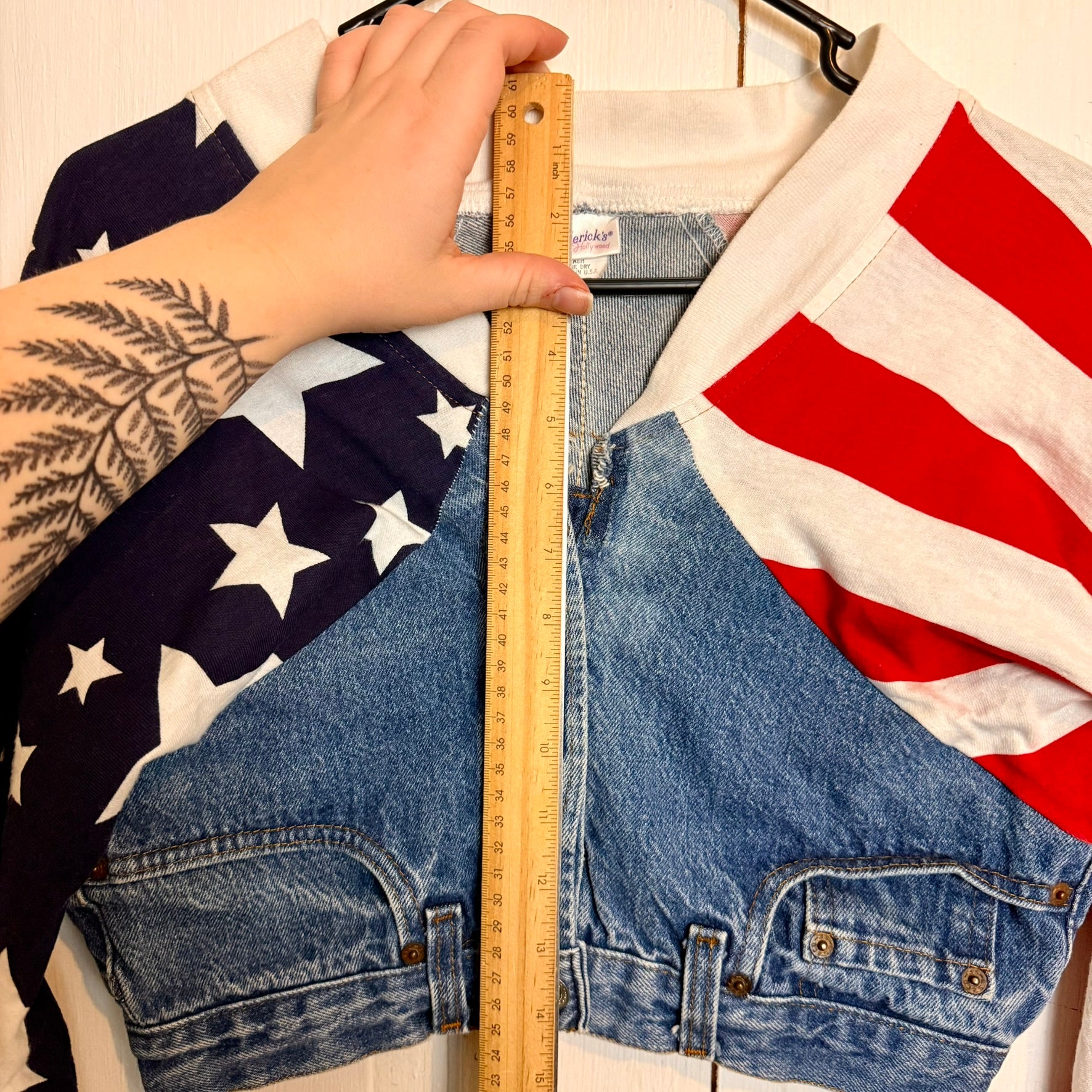 Vintage Frederick's of Hollywood Upcycled Denim Jean American Flag Jacket