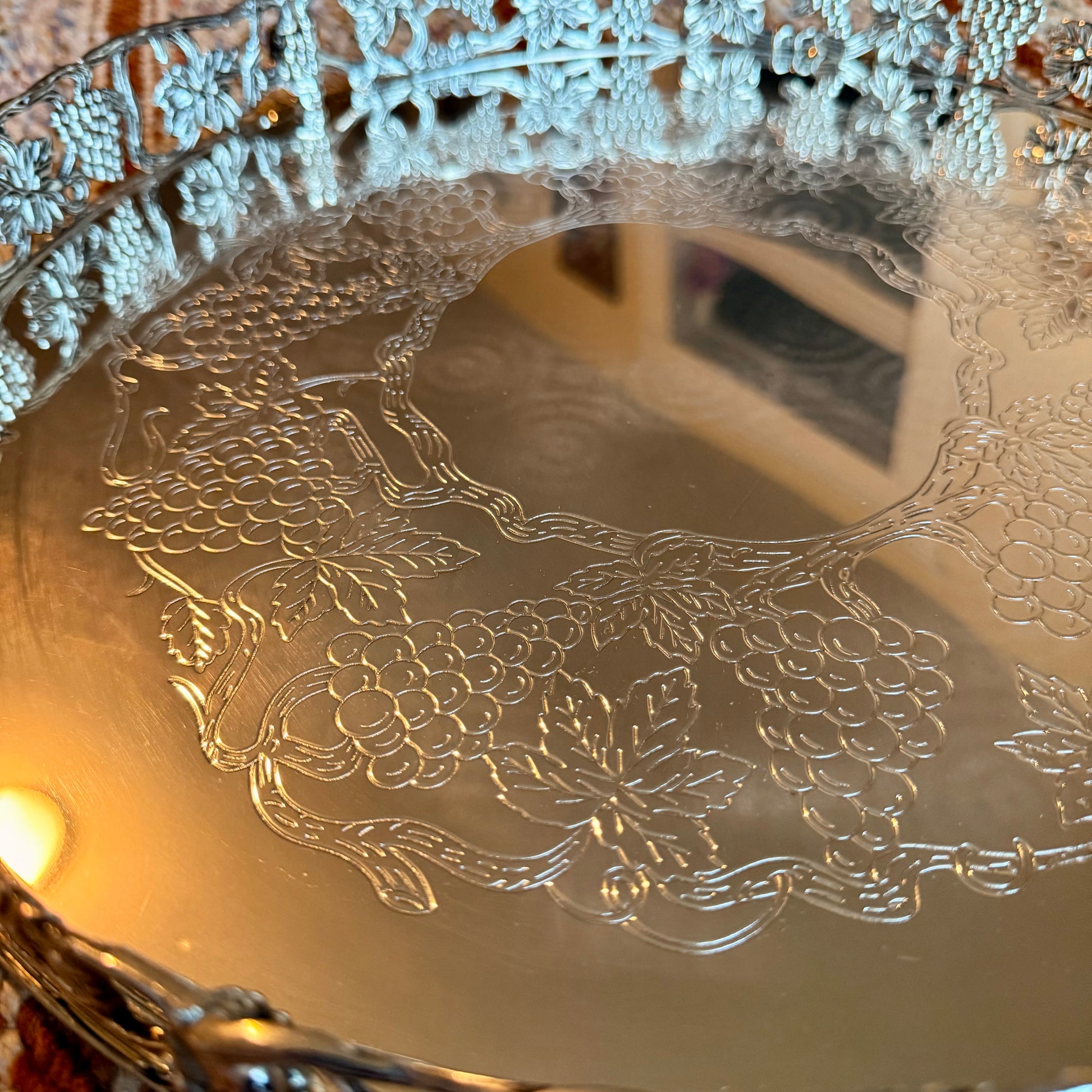 Vintage Goldinger Grape Design Silver Plated Vanity Tray - Still in Box