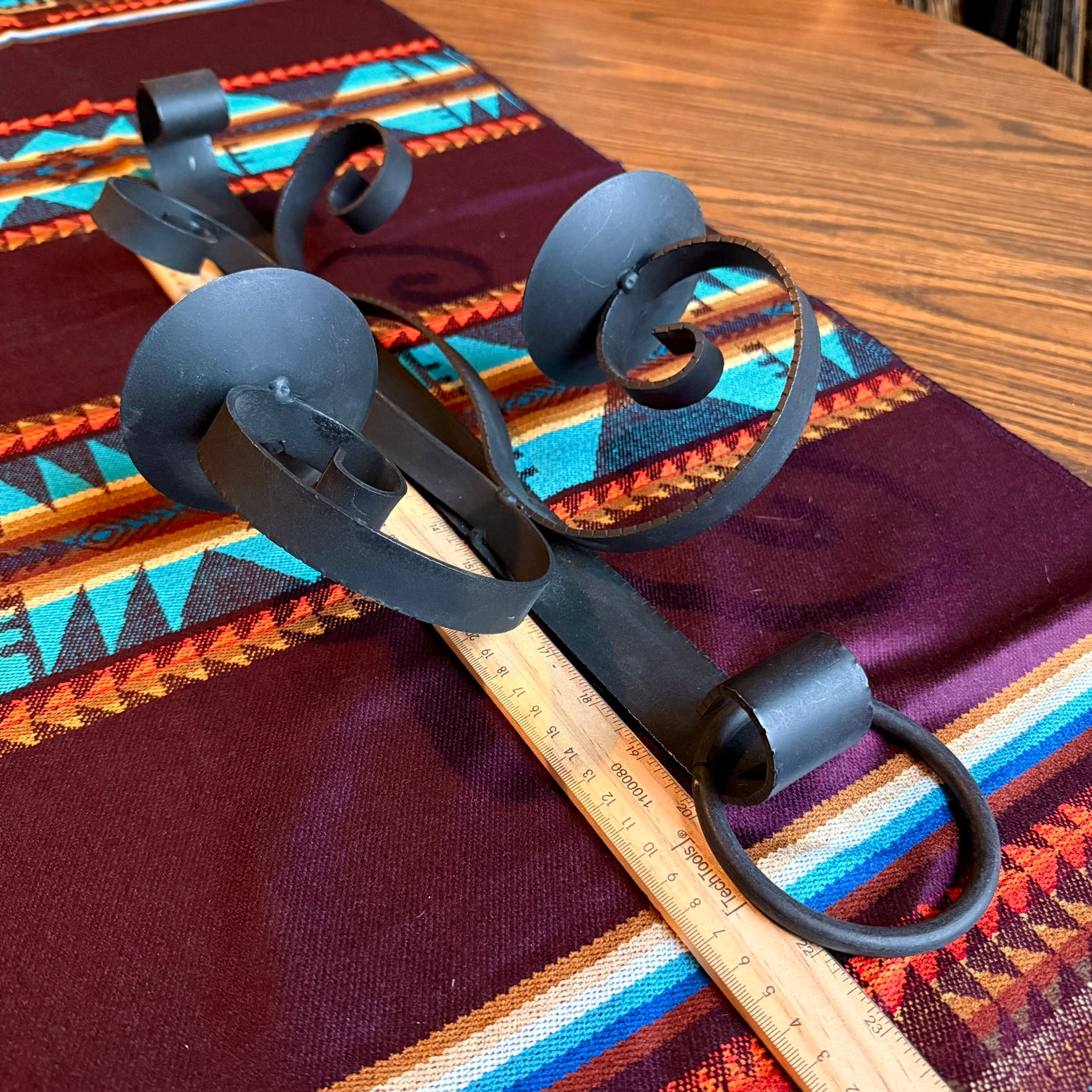 Vintage Gothic Spanish Revival Wrought Iron Wall Sconce Candle Holder. Beautiful heavy iron gothic wall sconce. Two candle wall mounted candlestick candelabra. In great condition.