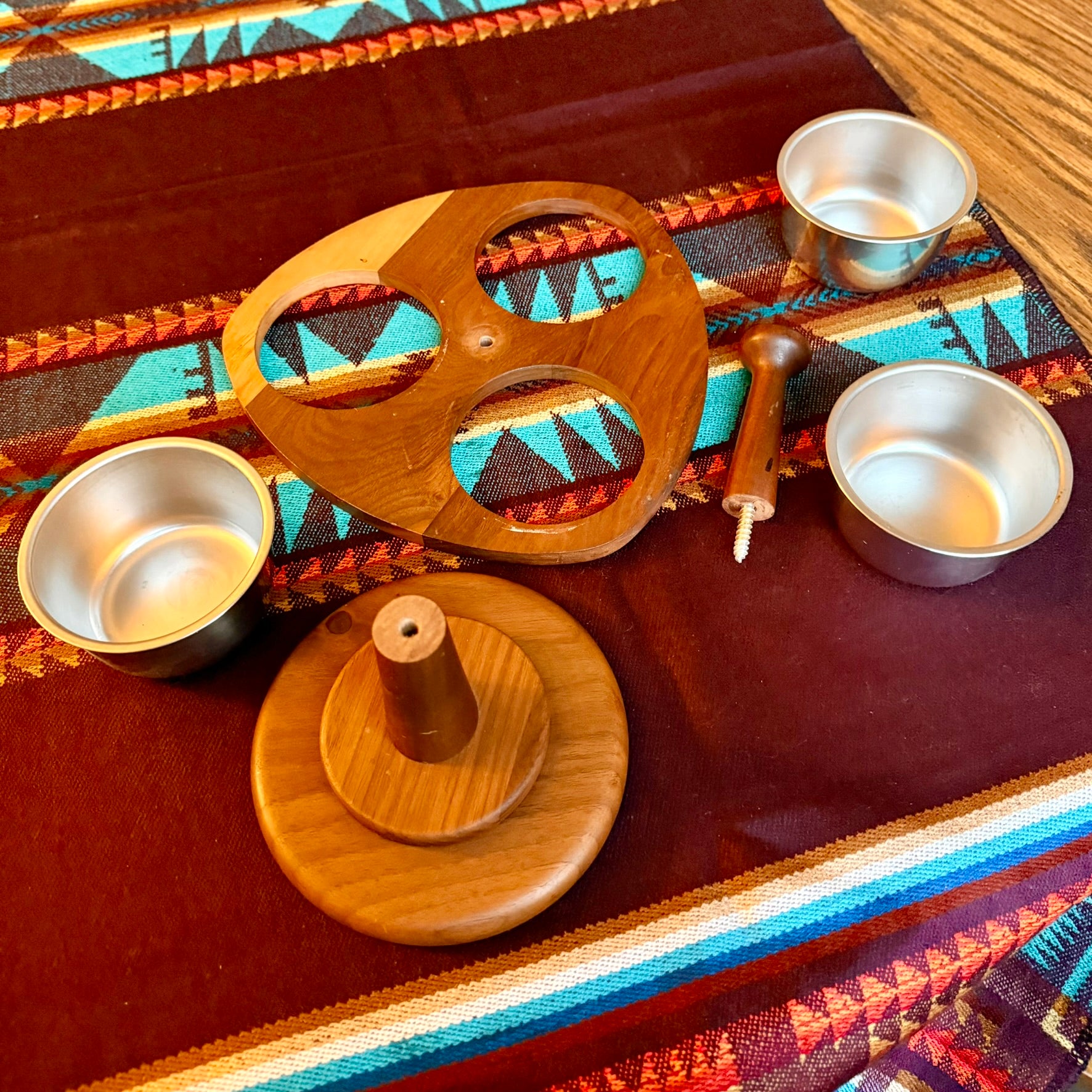 Vintage Handmade Amish Solid Walnut Lazy Susan Condiment Caddy
