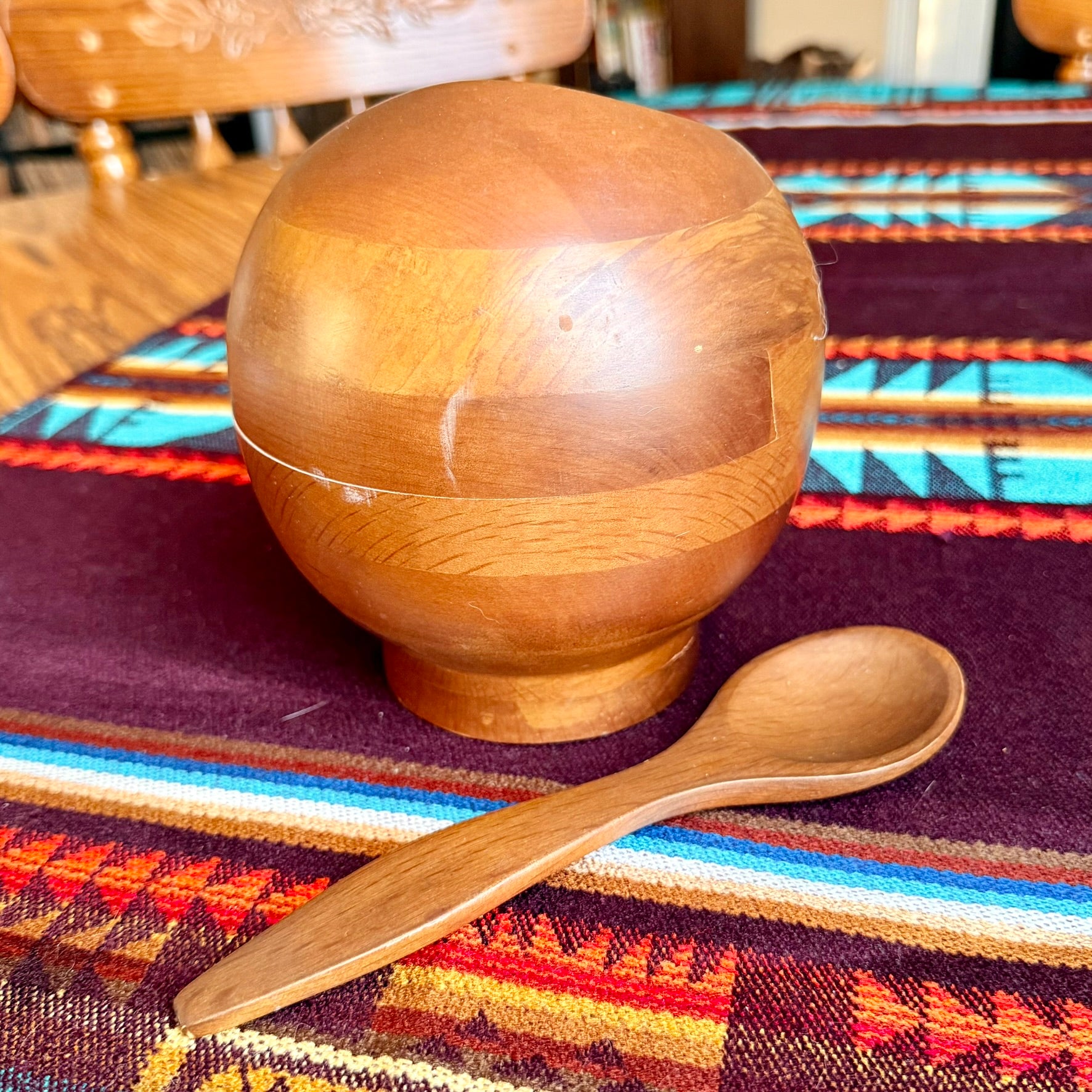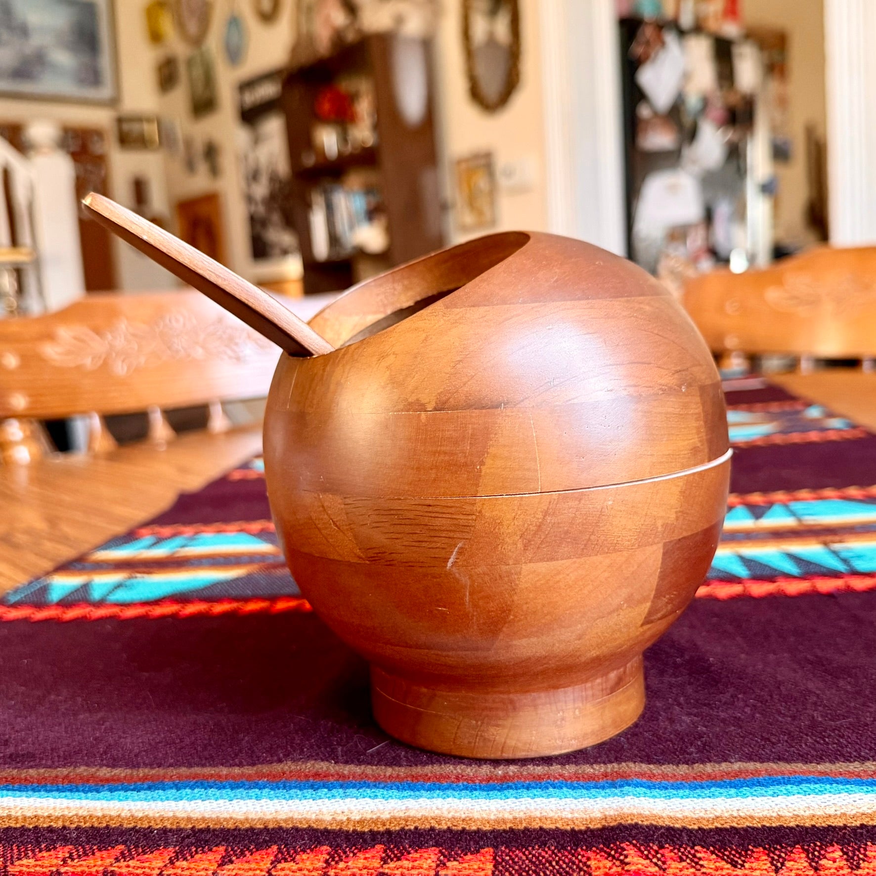 Vintage Hellerware Teakwood Atomic Orb Wooden Serving Bowl and Spoon