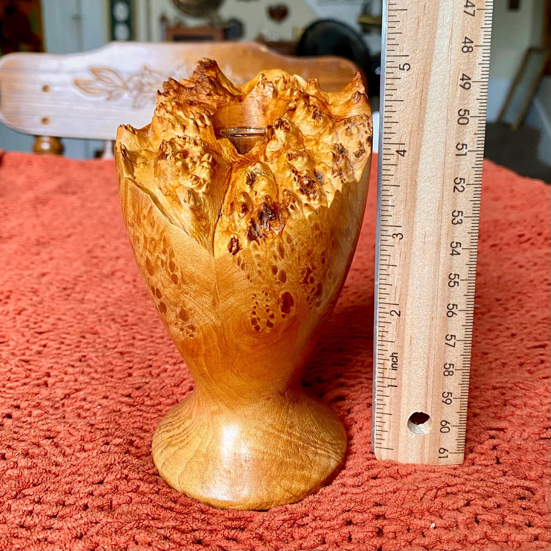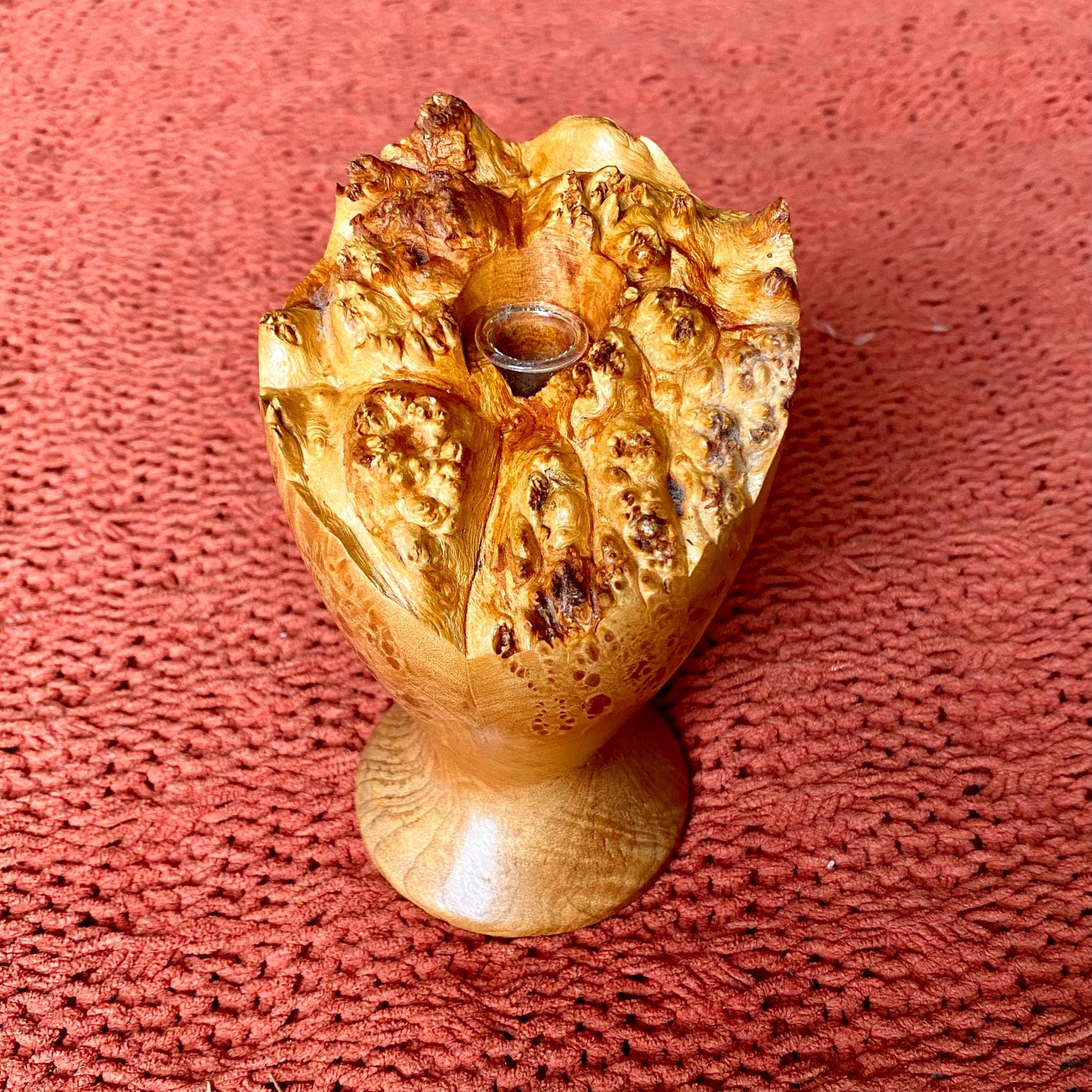 Vintage Mid-Century Modern Handmade Natural Edge Burlwood Bud Vase