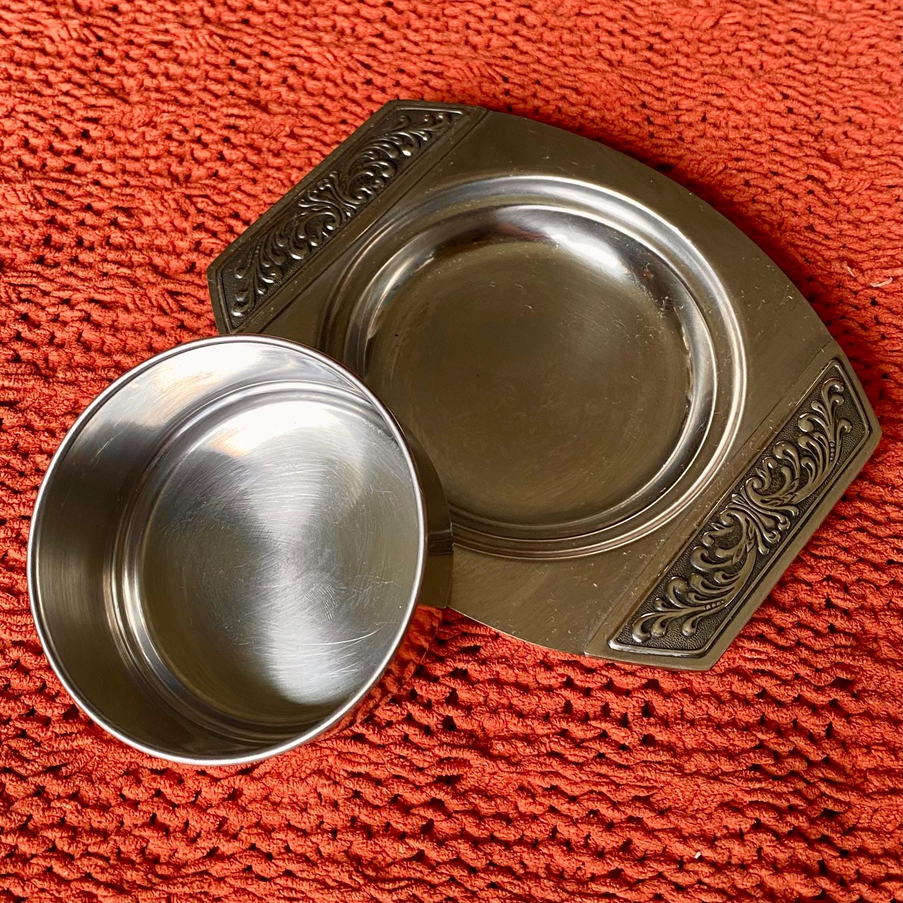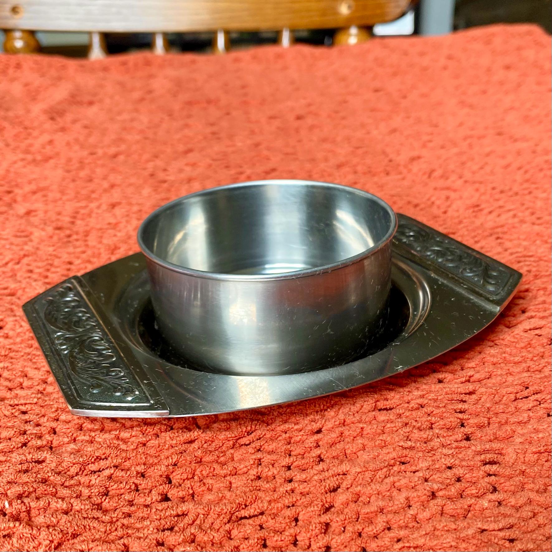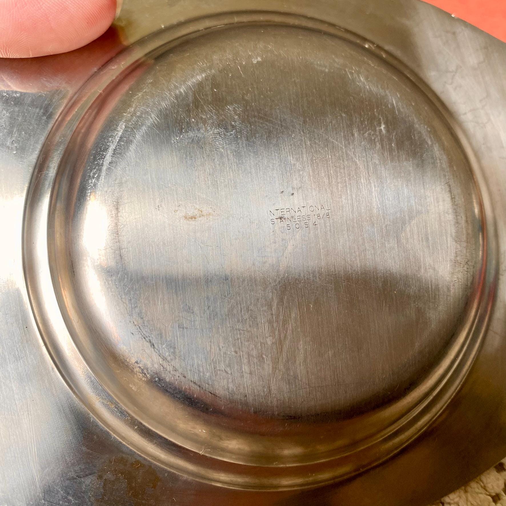 Vintage Mid-Century Modern International Stainless Steel Ornate Chip and Dip Tray