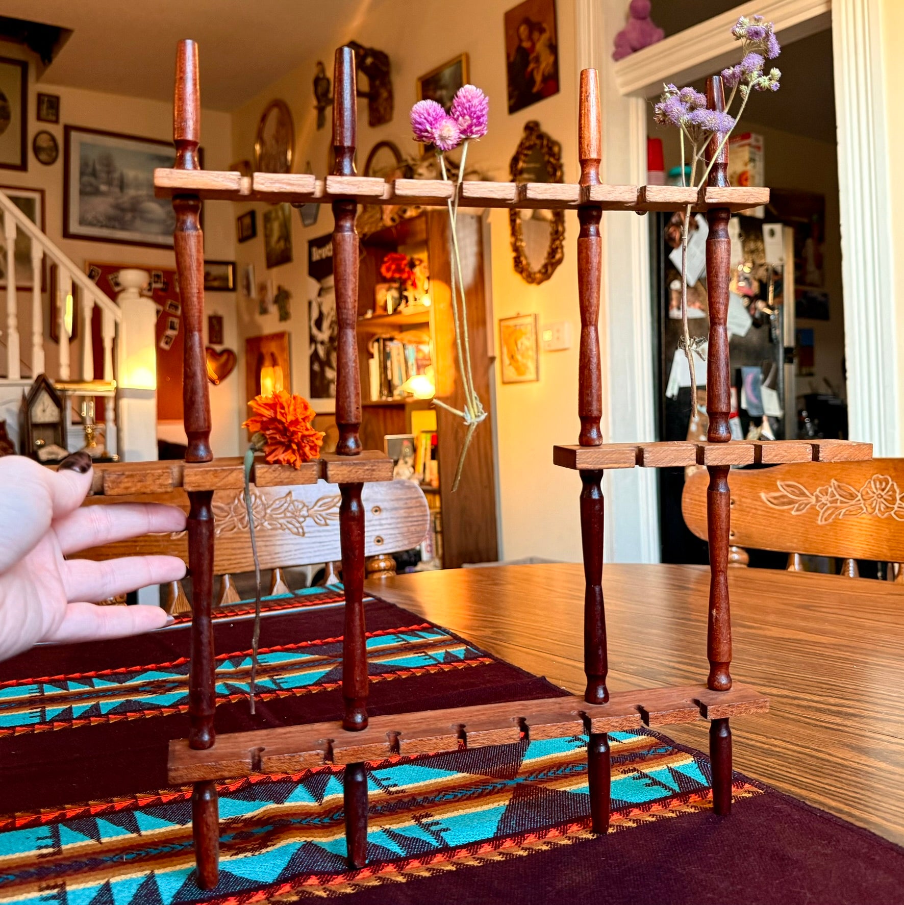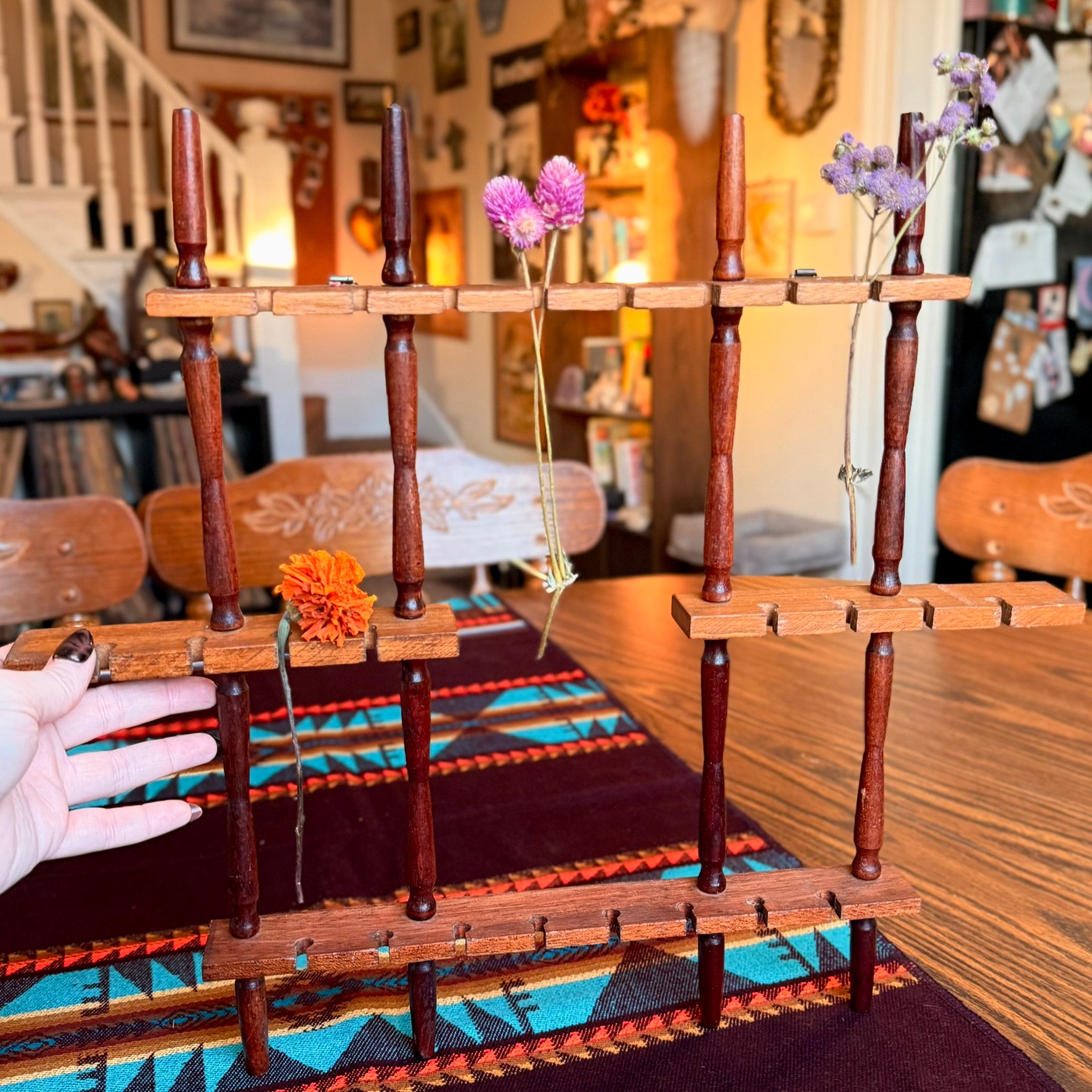 Vintage Mid-Century Modern Wooden Souvenir Spoon Holder/Flower Display. Beautiful mid-century modern style souvenir spoon holder. This is made of solid wood and the perfect piece for a mcm or cottagecore style home. I have seen these being repurposed as dried flower displays and think this would be beautiful filled with flowers!
