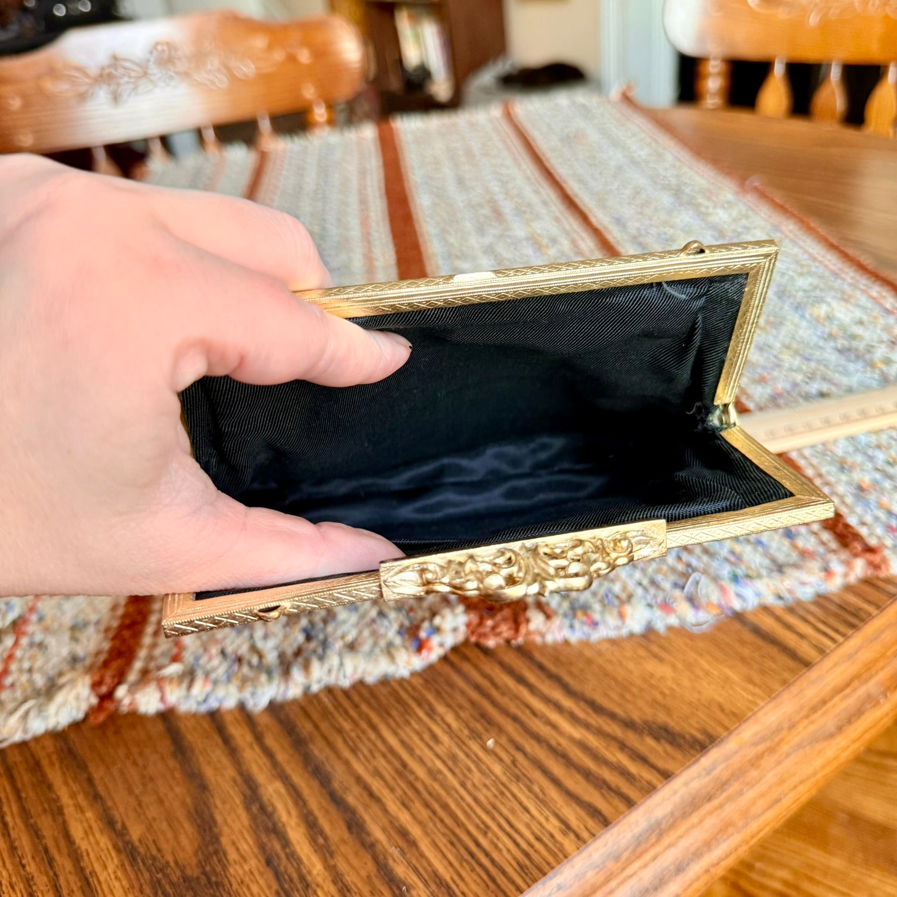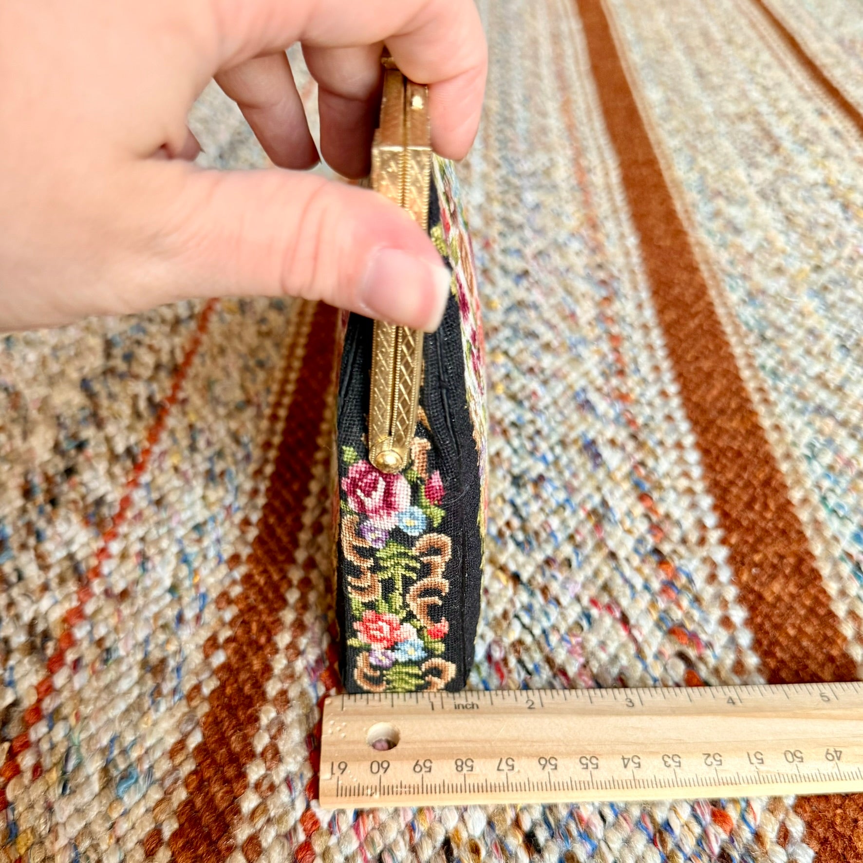 Vintage Petit Point Micro Needlepoint Floral Tapestry Clutch Evening Bag