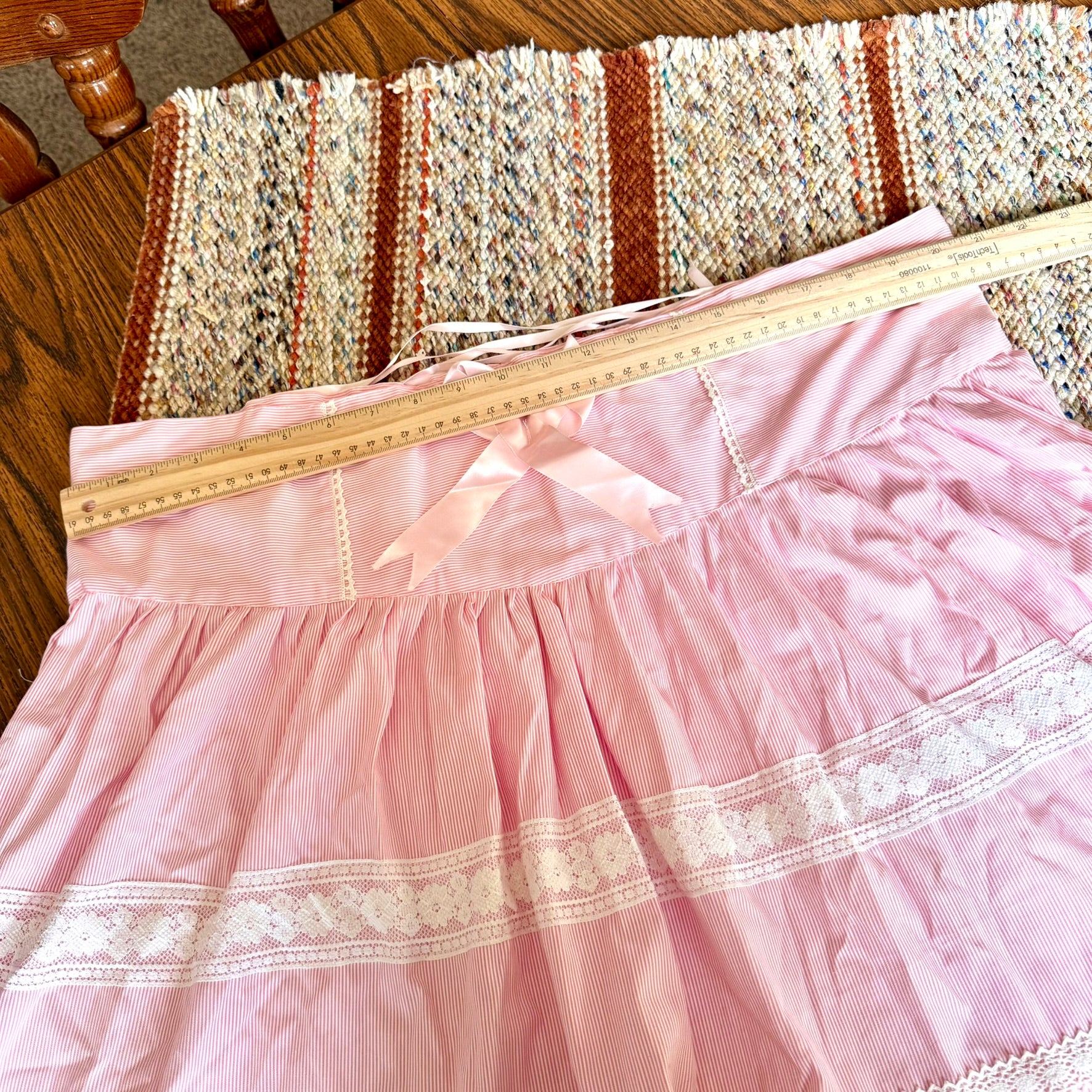 Vintage Pink Pinstriped Lace Ruffled Baby Doll Kawaii Skirt w/ Adjustable Ribbon Waist