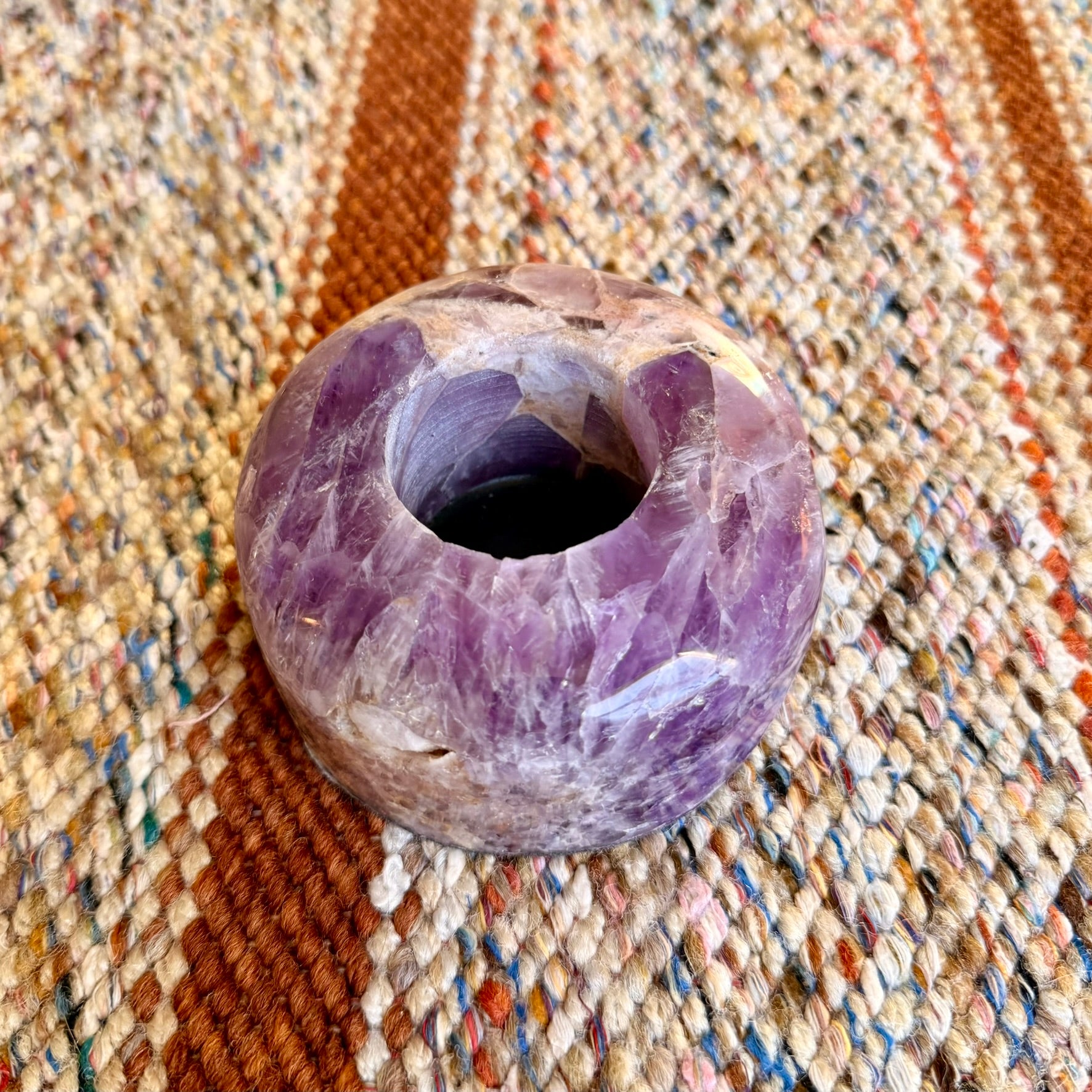 Vintage Purple Amethyst Stone Tee Light Holder / Tiny Succulent Stone Planter Pot