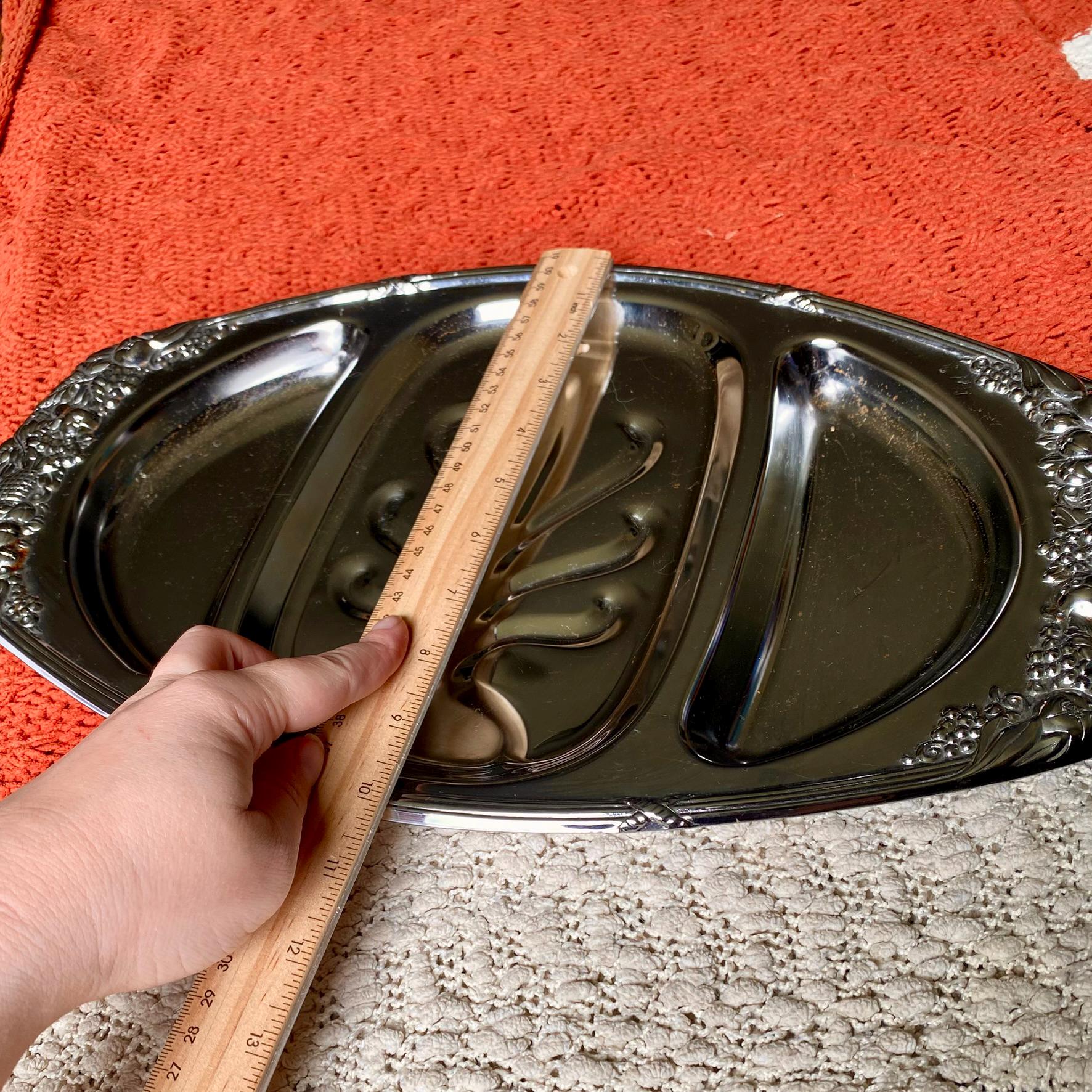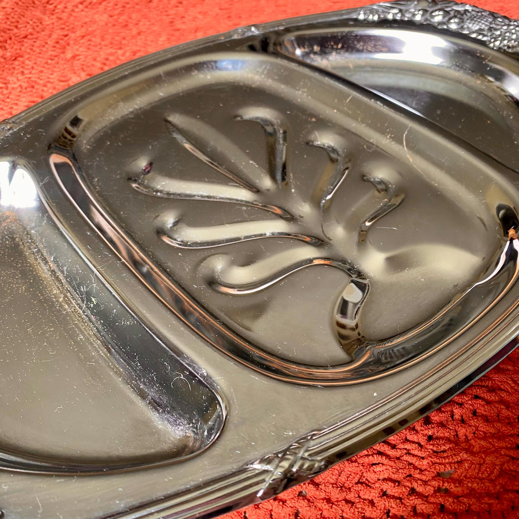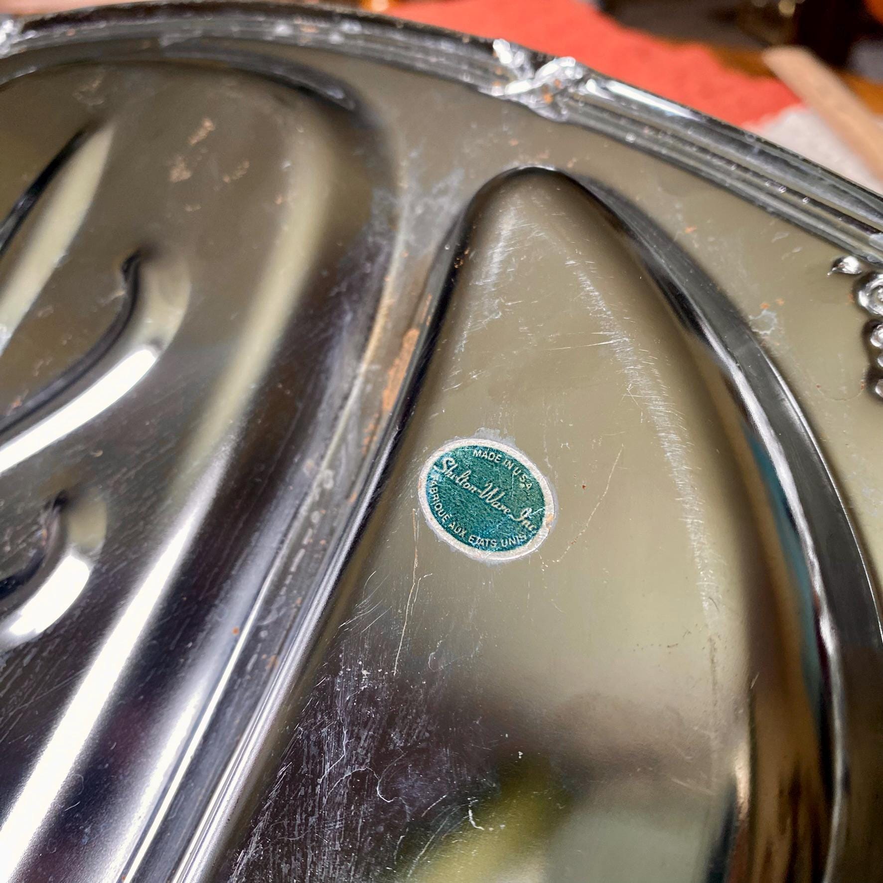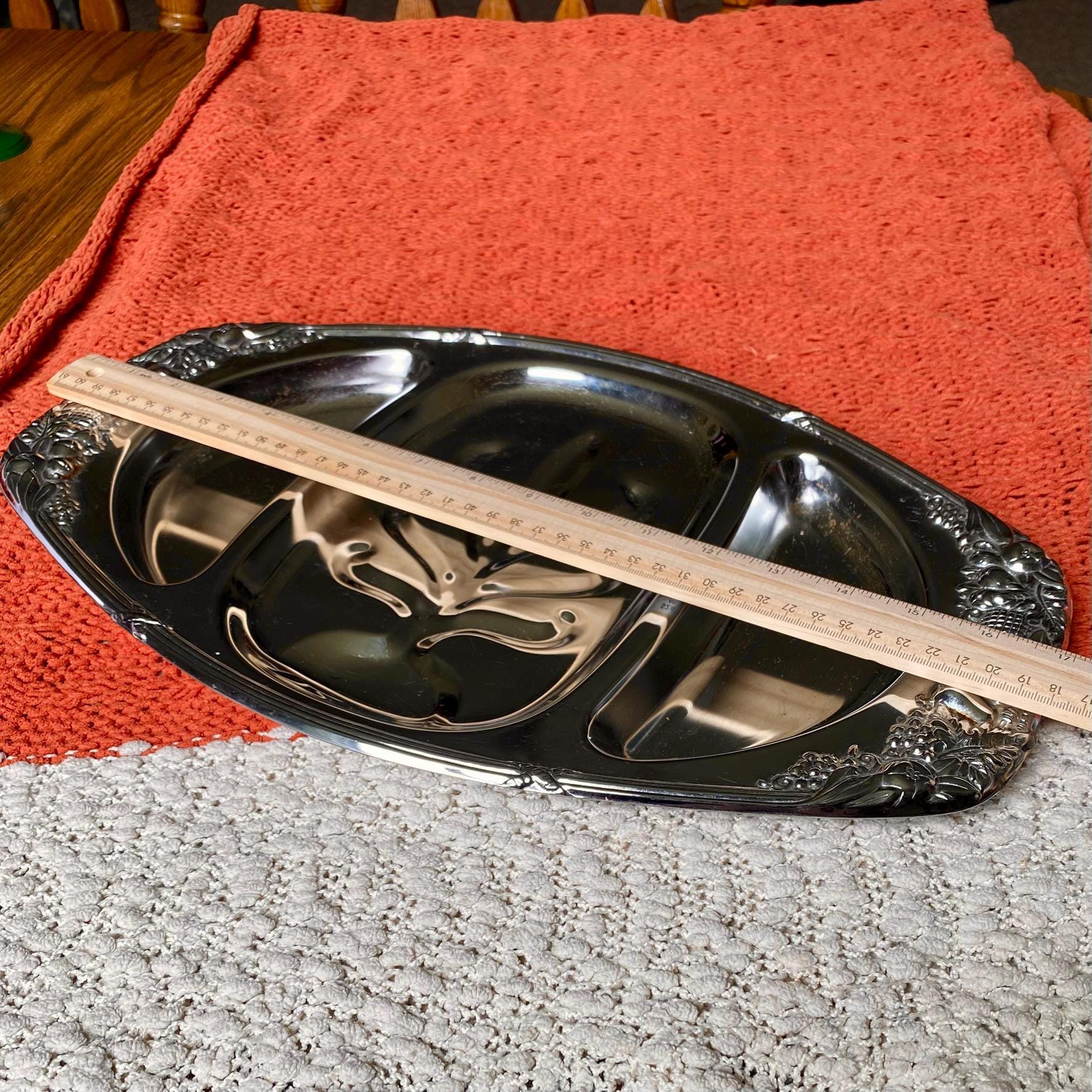 Vintage Shelton-Ware Chrome Serving / Trinket Tray with Three Compartments and Ornate Fruit Design on Edges