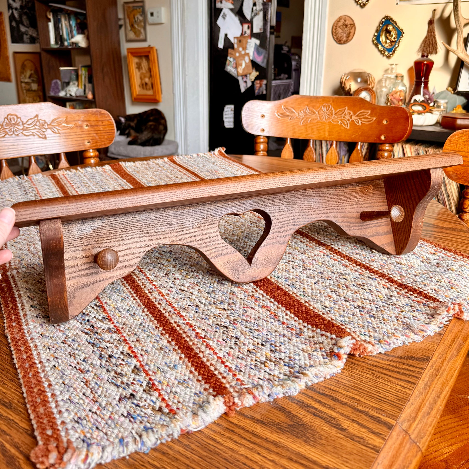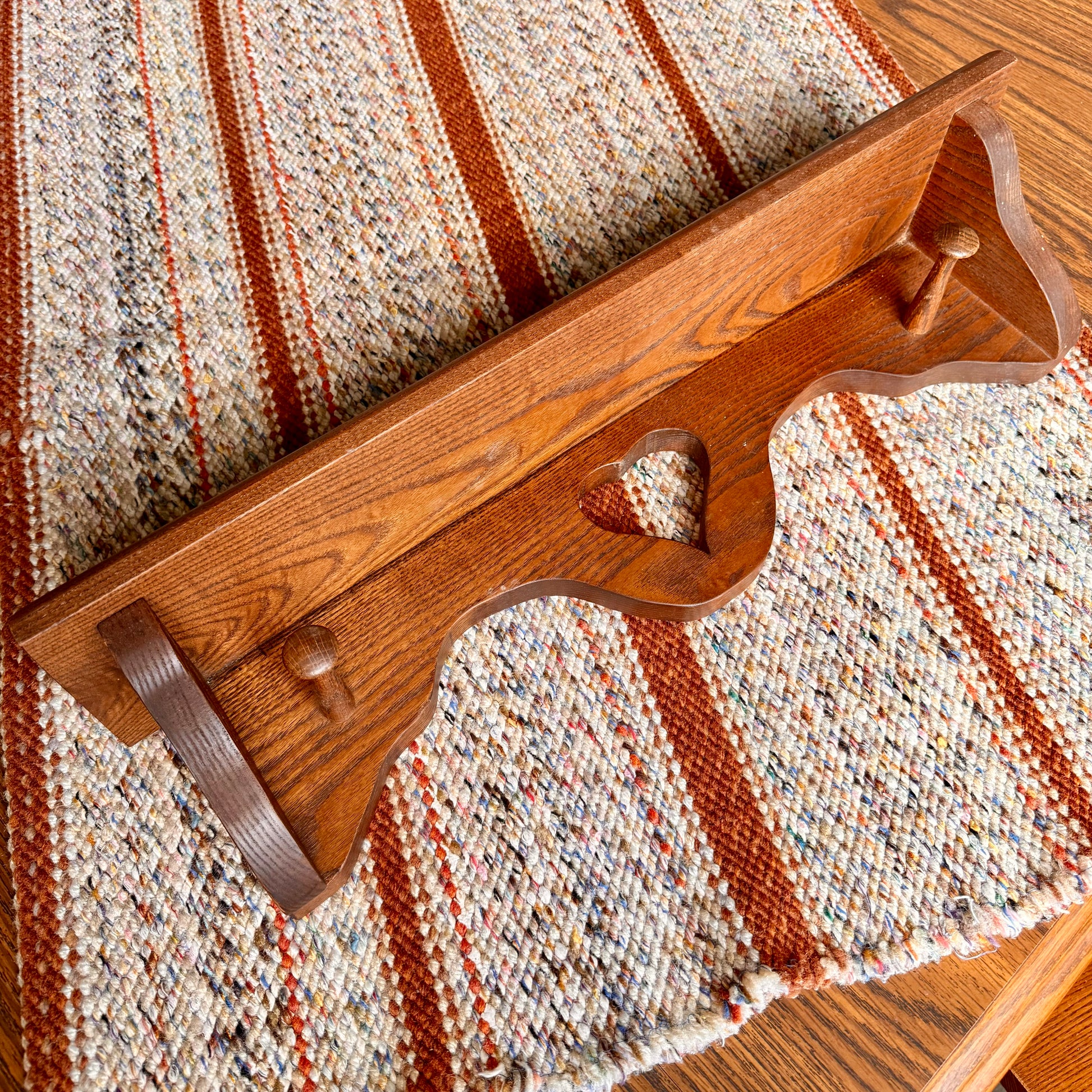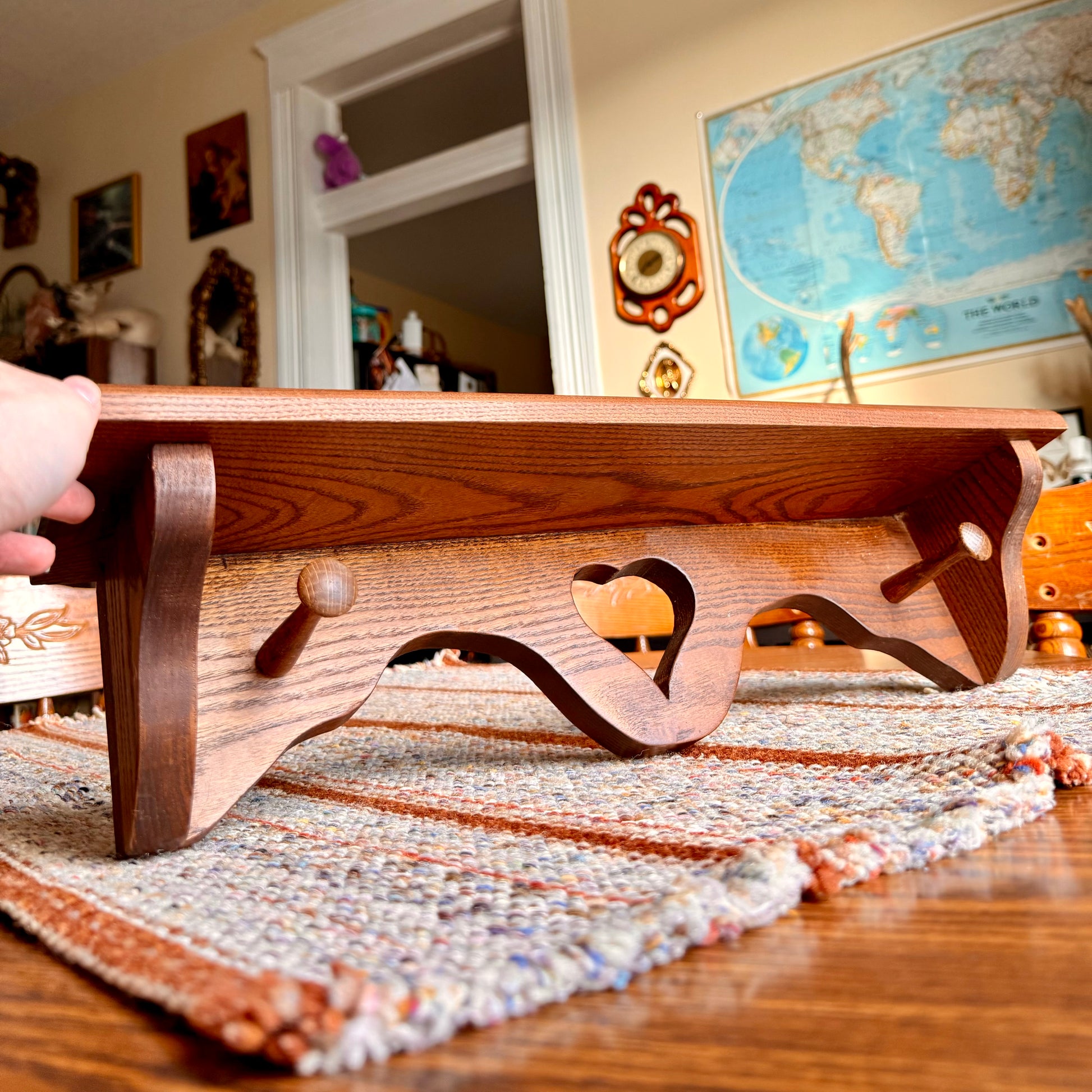 Vintage Solid Oak Amish Wood Shelf with Heart Cut Out and Two Hangers