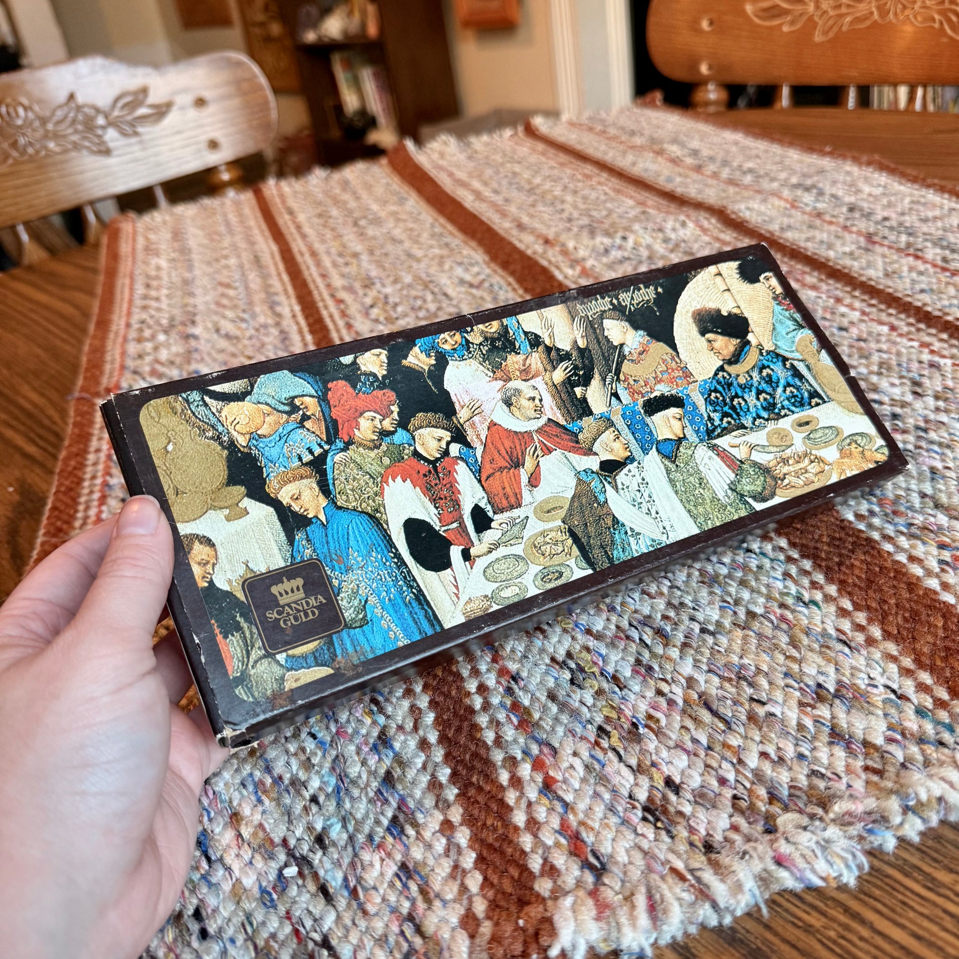 The Vintage Swedish Scandia Guld Three Piece Wedding / Cake Serving Set is a luxurious and elegant serving set perfect for special occasions like weddings. Made of gold plated metal, this set exudes sophistication and charm. The brand, Scandia Guld, adds a touch of uniqueness to this classic set, making it a standout piece in any dining collection. Perfect for serving wedding cakes or other desserts, this set is sure to add a touch of glamour to any table setting.
