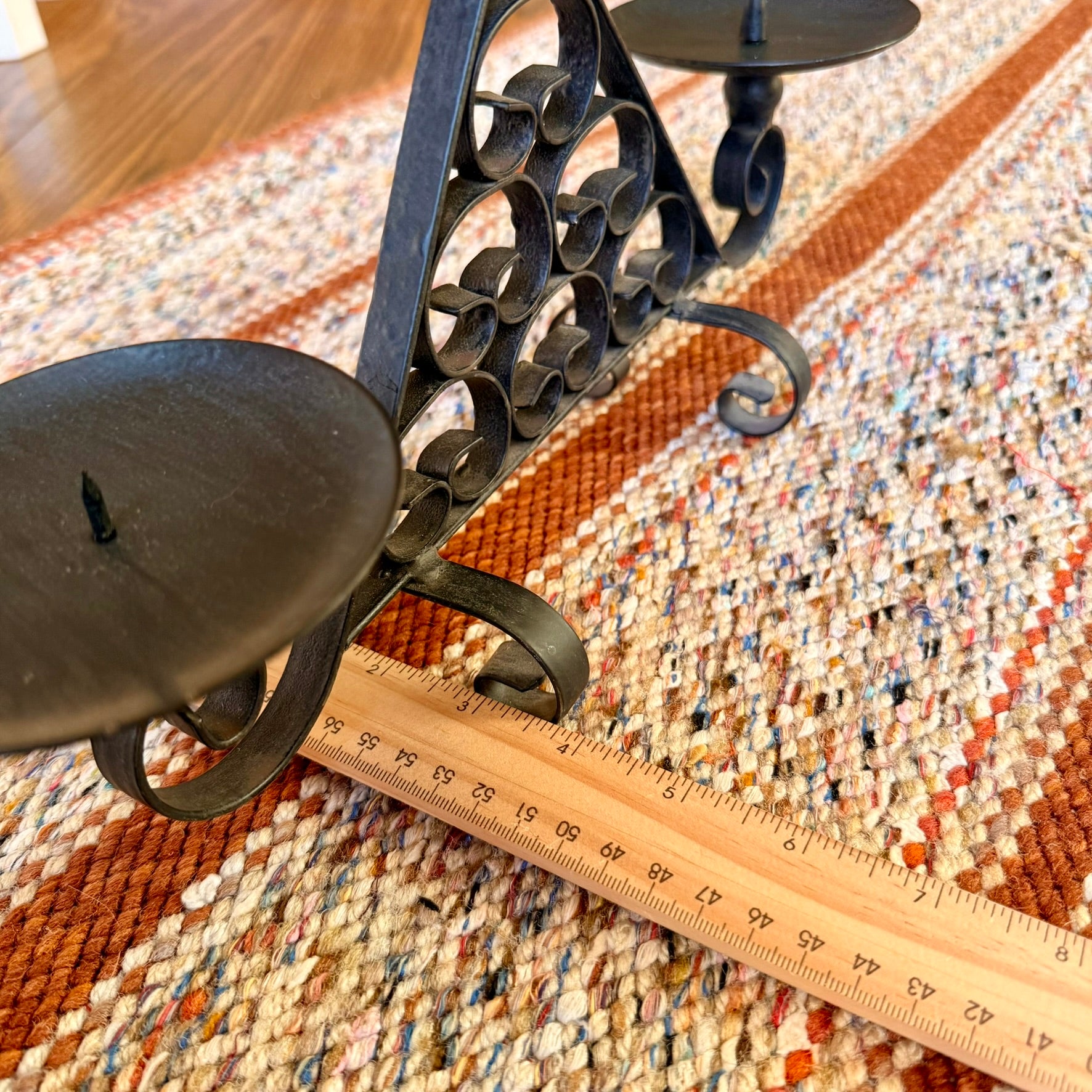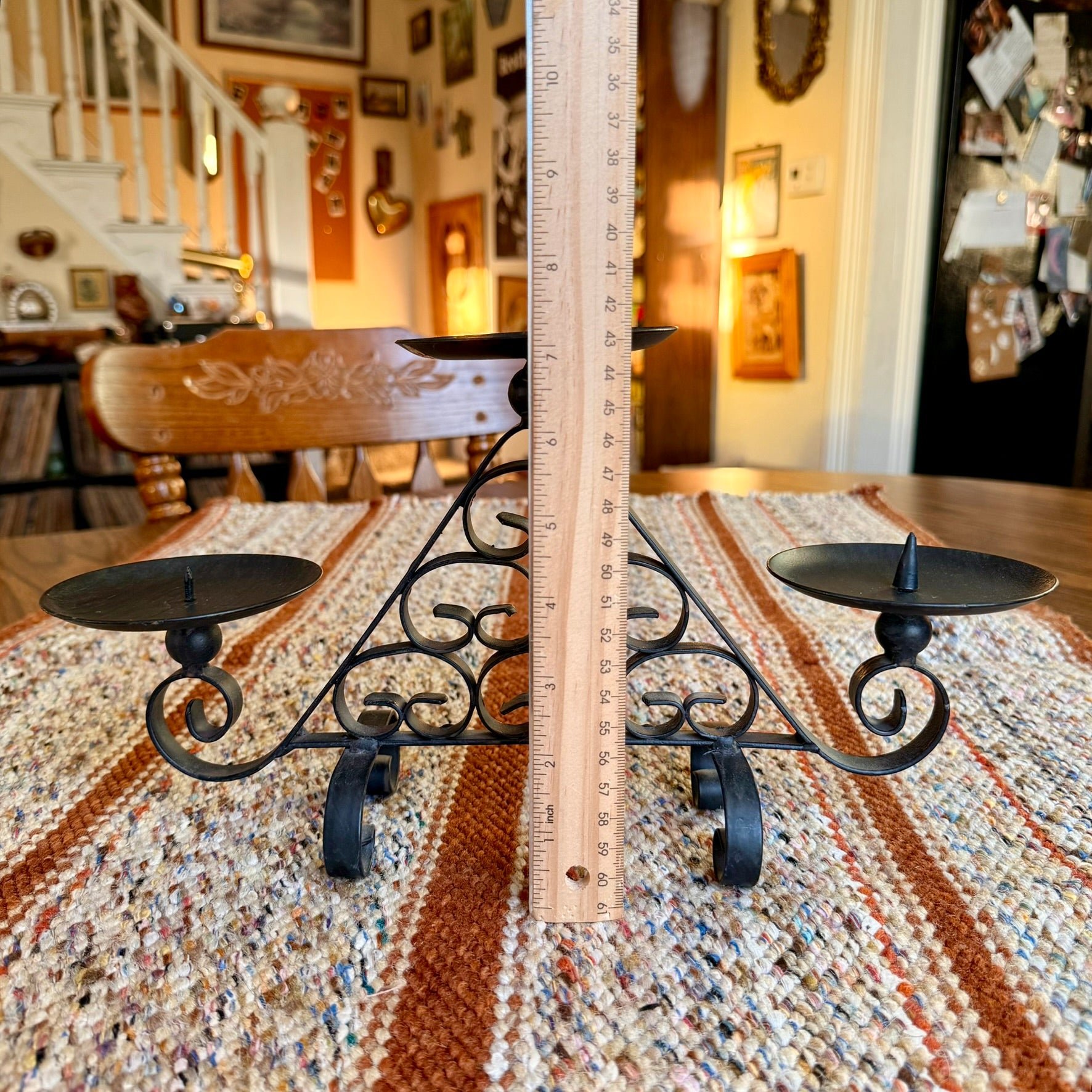 Vintage Wrought Iron Spanish Scroll Style 2 Tier 3 Pillar Candelabra