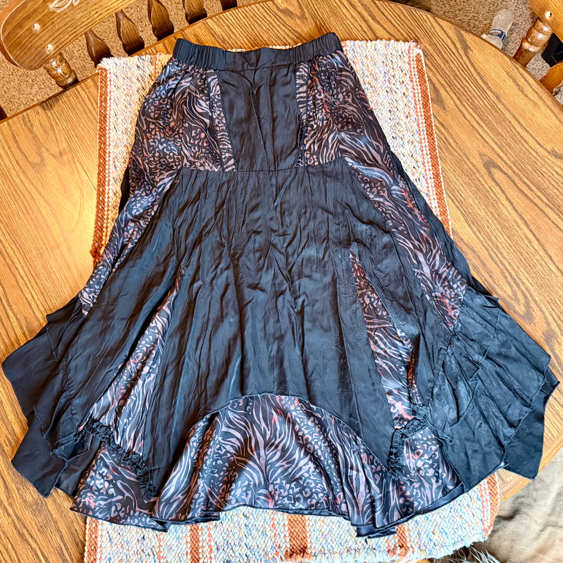 This vintage y2k Pretty Angel maxi skirt is the perfect whimsical addition to your closet! Whether you like 90s grunge style, goth, fairycore or hippie inspired clothing this tiered multilayered skirt can pair with anything and adds tons of movement to your outfit!